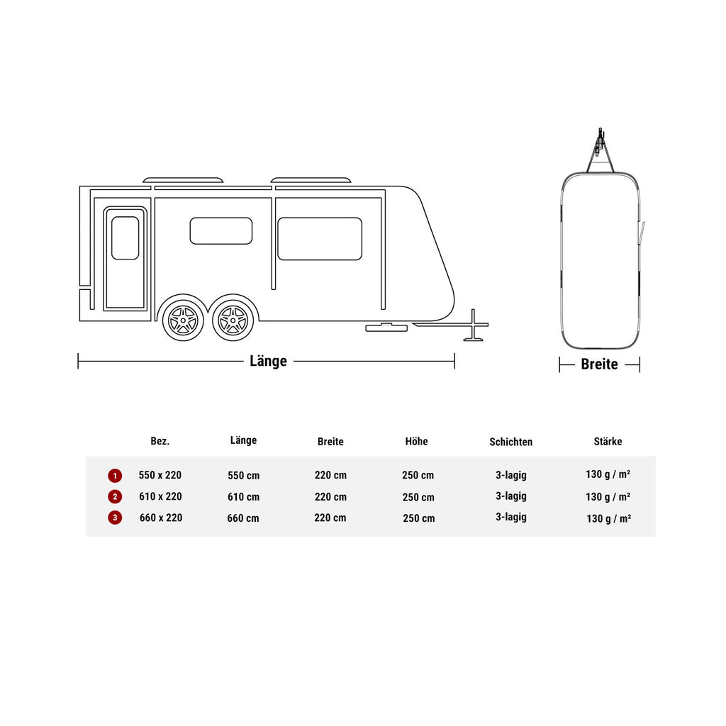 ✔ Wohnwagenschutzhülle für Fahrzeuge bis zu einer Breite von 220cm und einer Höhe von 250cm