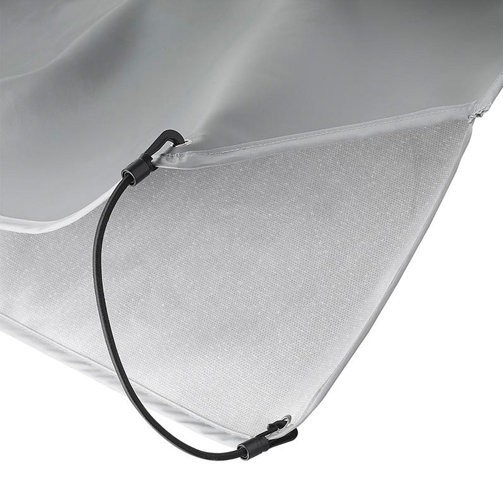 Universell passendDie Deichsel Abdeckung hat eine ideale Größe um den gesamten Deichselbereich abzudecken. Auch größere Antischlingerkupplungen und Stützräder lassen sich mühelos schützen. Zusätzlich ist diese Deichselhaube mit einem Expanderseil versehen, was die Befestigung enorm erleichtert.