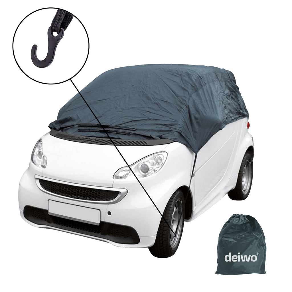 Stressfreies Montage ohne den Verstand zu verlierenEine schnelle und stressfreie Montage sorgt in den meisten Fällen für ein angenehmeres Gemüt. Hat man heutzutage keine Lust, sich ewig mit der Anbringung mittelklassiger Halbgaragen zu befassen. deiwo® Halbgaragen sind durch eine Vierpunktbefestigung schnell am Auto angebracht. Dank doppeltem Gummizug und Hakenbefestigung, lässt sich die Schutzhülle mühelos in nur wenigen Minuten am Fahrzeug befestigen. So bleibt das Auto künftig vor Nässe, Schmutz und anderen unerwünschten Partikeln geschützt.