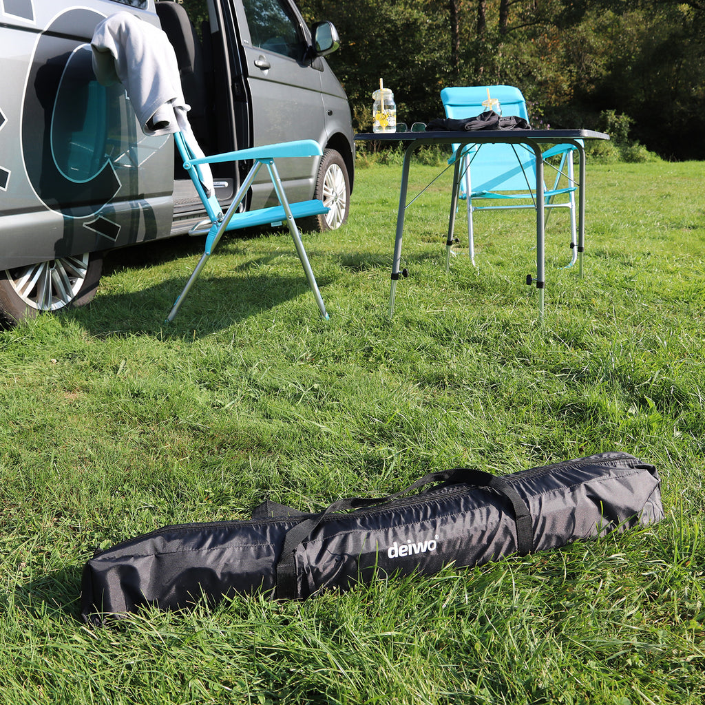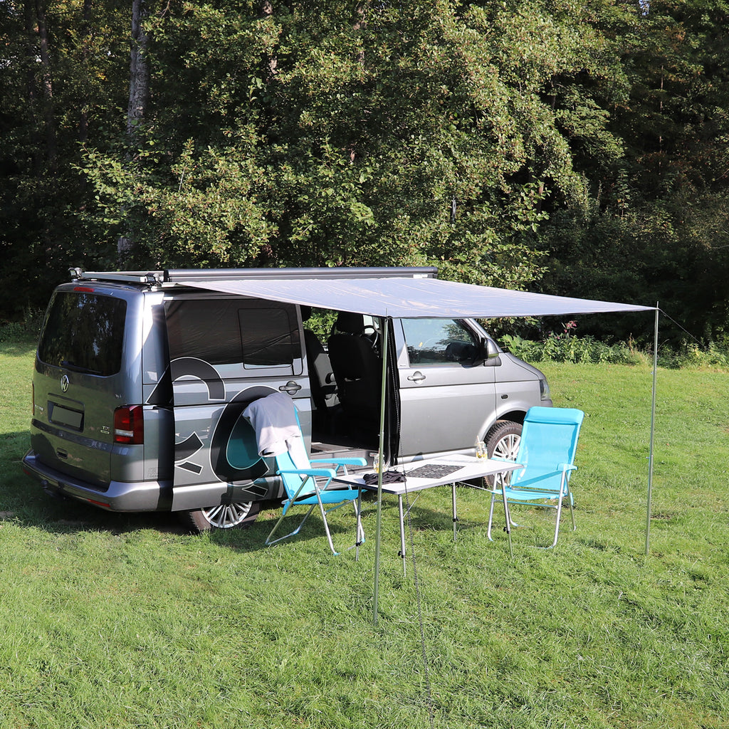 Hier ist Dein Schattenspender für unterwegs: Niemand sollte stundenlang in der prallen Sonne sitzen! Das beeinträchtigt nicht nur den Gesundheitszustand auf Dauer, sondern kann auch kurzfristig aufs Gemüt schlagen und so die Urlaubsfreude vermiesen. Optionen, um sich zu schützen, gibt es viele. Neben einem UV-Schutz auf der Haut in Form von Lotions und Sprays, ist bei uns von Markise bis Vorzelt alles dabei und das in unterschiedlichsten Farben, Formen und Größen. Doch eines haben viele der gängigen Produkte gemeinsam: Sie sind relativ zeitintensiv oder komplex im Aufbau und haben einen hohen Einstiegspreis. Das muss nicht sein! Unser Fokus für unser Sonnenschutzsegel für Freizeitfahrzeuge liegt hier, wie bei all unseren Produkten, auf Qualität und Funktionalität. Mit dem Sonnensegel Premium von deiwo® hast Du ein verlässliches Essential im Gepäck, das im Handumdrehen aufgebaut und bereit für seinen Einsatz ist.