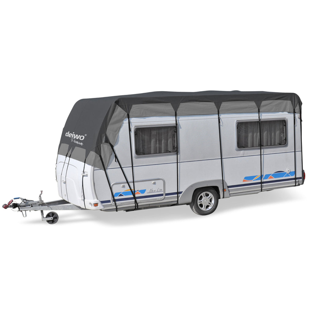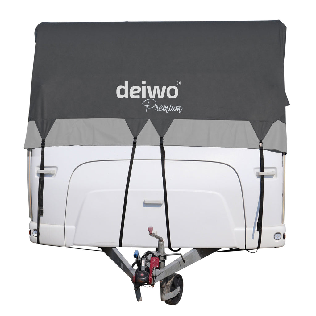 - Lieferumfang: 1x Deiwo Premium Wohnwagen Abdeckplane passgenau inkl. Verzurrgurte und Packtasche