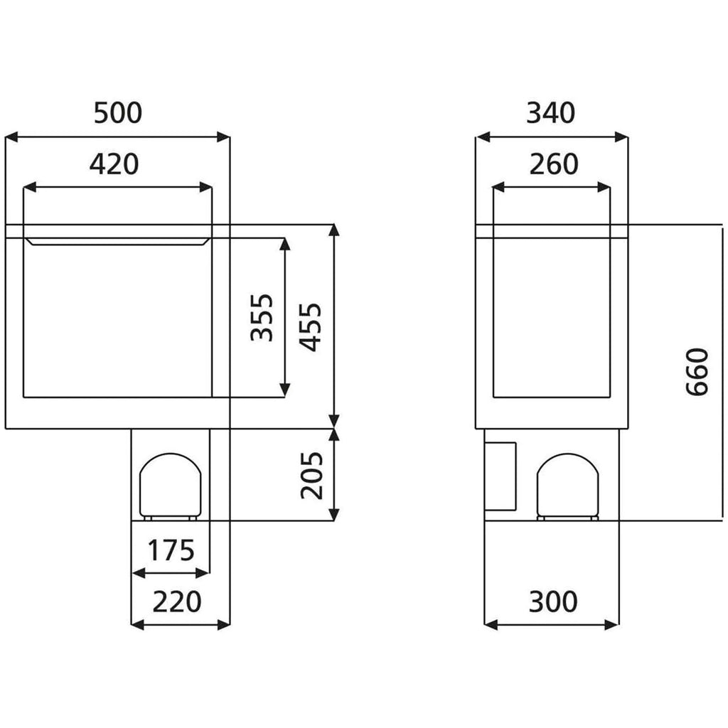 - Materialien: Außenseite verzinktes Stahlbelch, Innenseite Stahl beschichtet in Weiß