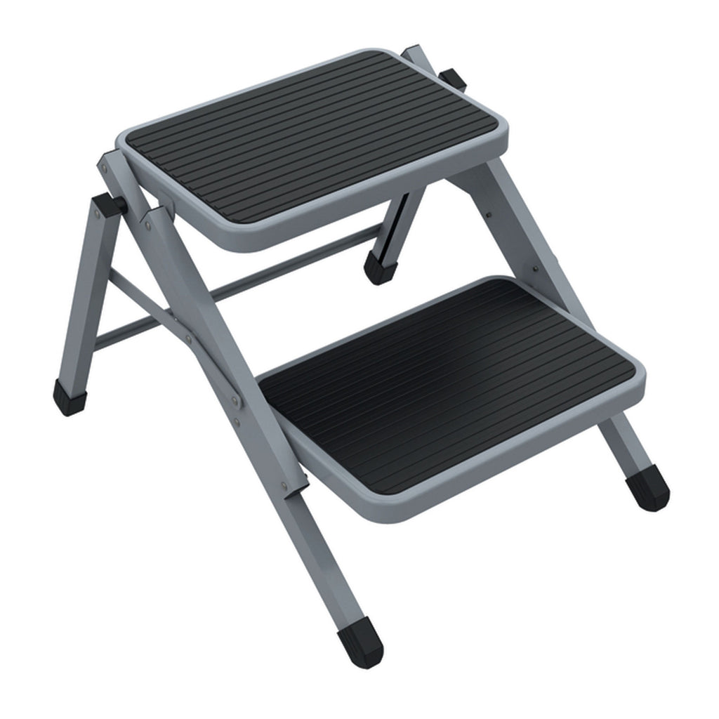 Die Doppeltrittstufe eignet sich ideal als Einstiegshilfe für deinen Wohnwagen, Wohnmobil oder Camper. Dank der gummierten Auflagen ist die Trittstufe extra trittsicher, darüberhinaus sehr robust und bis zu 150kg belastbar. Zusätzlich ermöglicht die Klappfunktion der Beine, ein extrem kleines Packmaß.