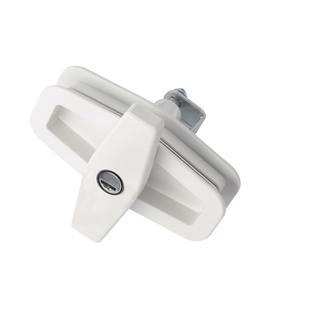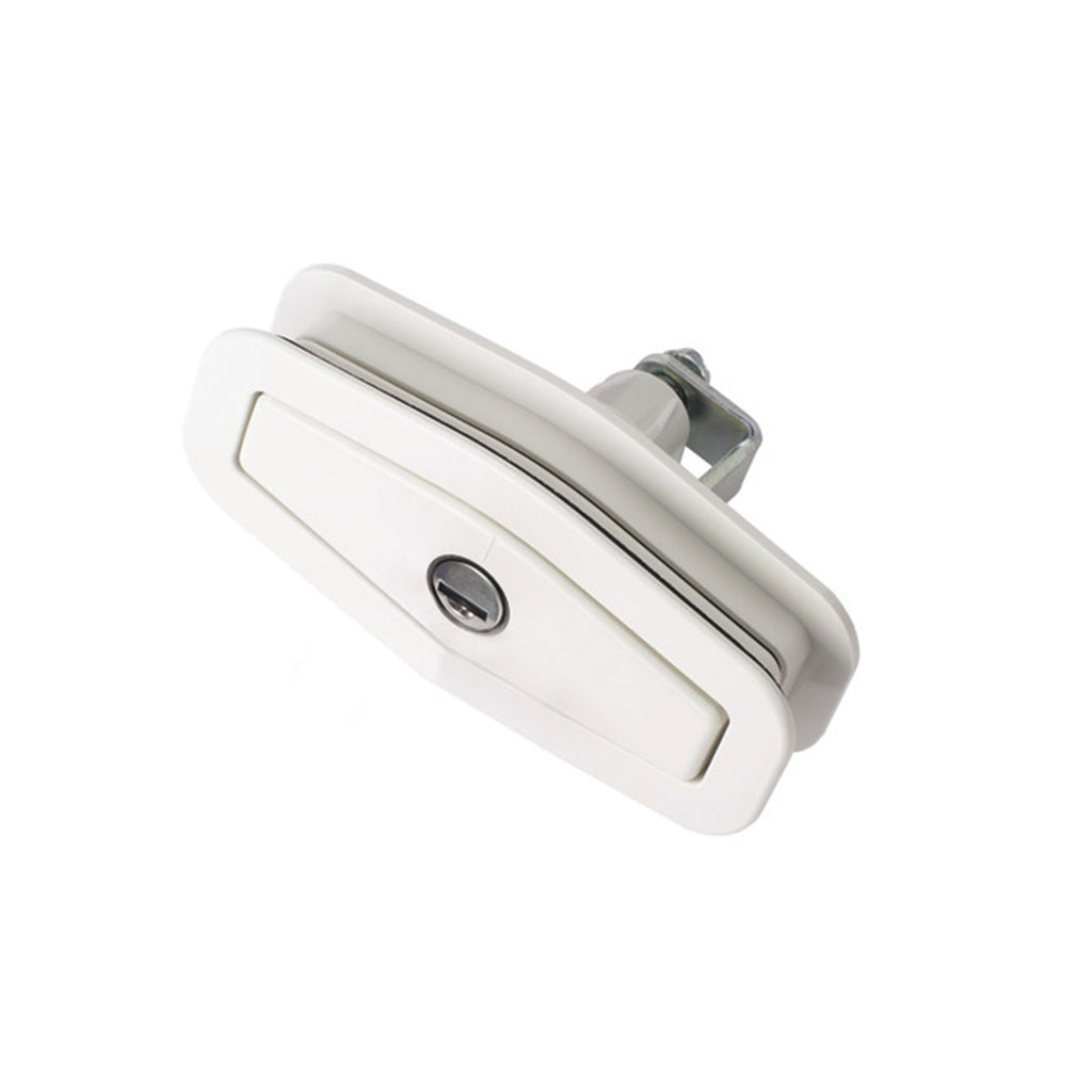 • Durch Drehen des Griffes um 180° zieht der Riegel, bei einem Spannweg von 6 mm, die Klappe an die Dichtung