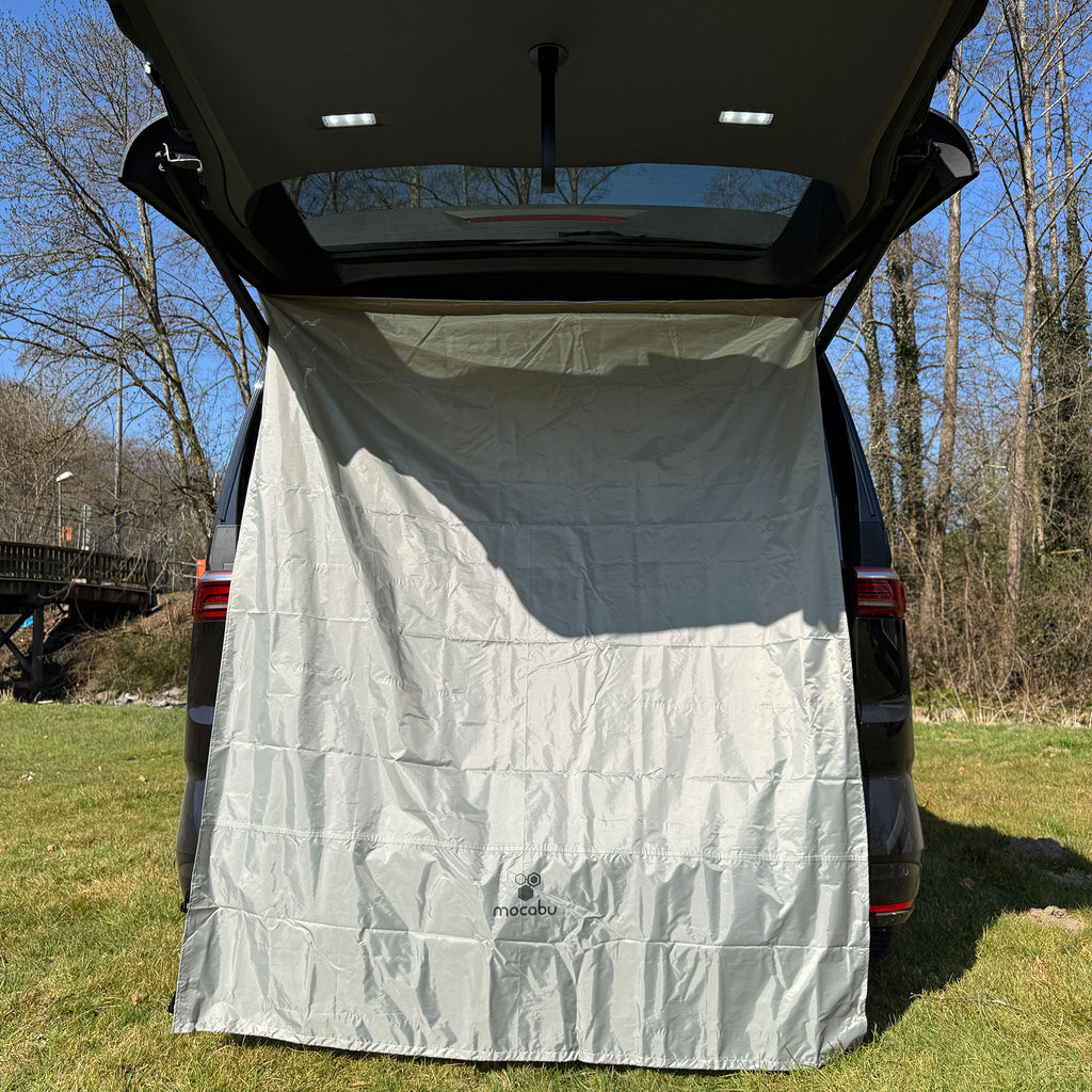 Camping ist Freiheit! Aber ein bisschen Privatsphäre kann nicht schaden, oder? Unser mocabu Spritz- & Sichtschutz sorgt dafür, dass du ungestört duschen, umziehen oder einfach chillen kannst – ohne neugierige Blicke oder ungewollte Wasserspritzer. 😉
