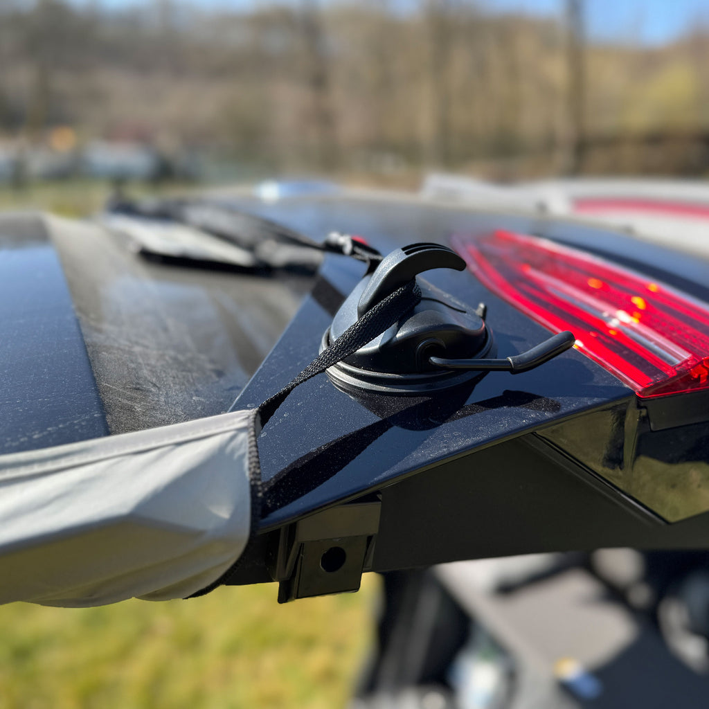 - 🔗 Einfache Befestigung: Steckschnalle über der Heckklappe & Haken am Stoßfänger – hält bombenfest!