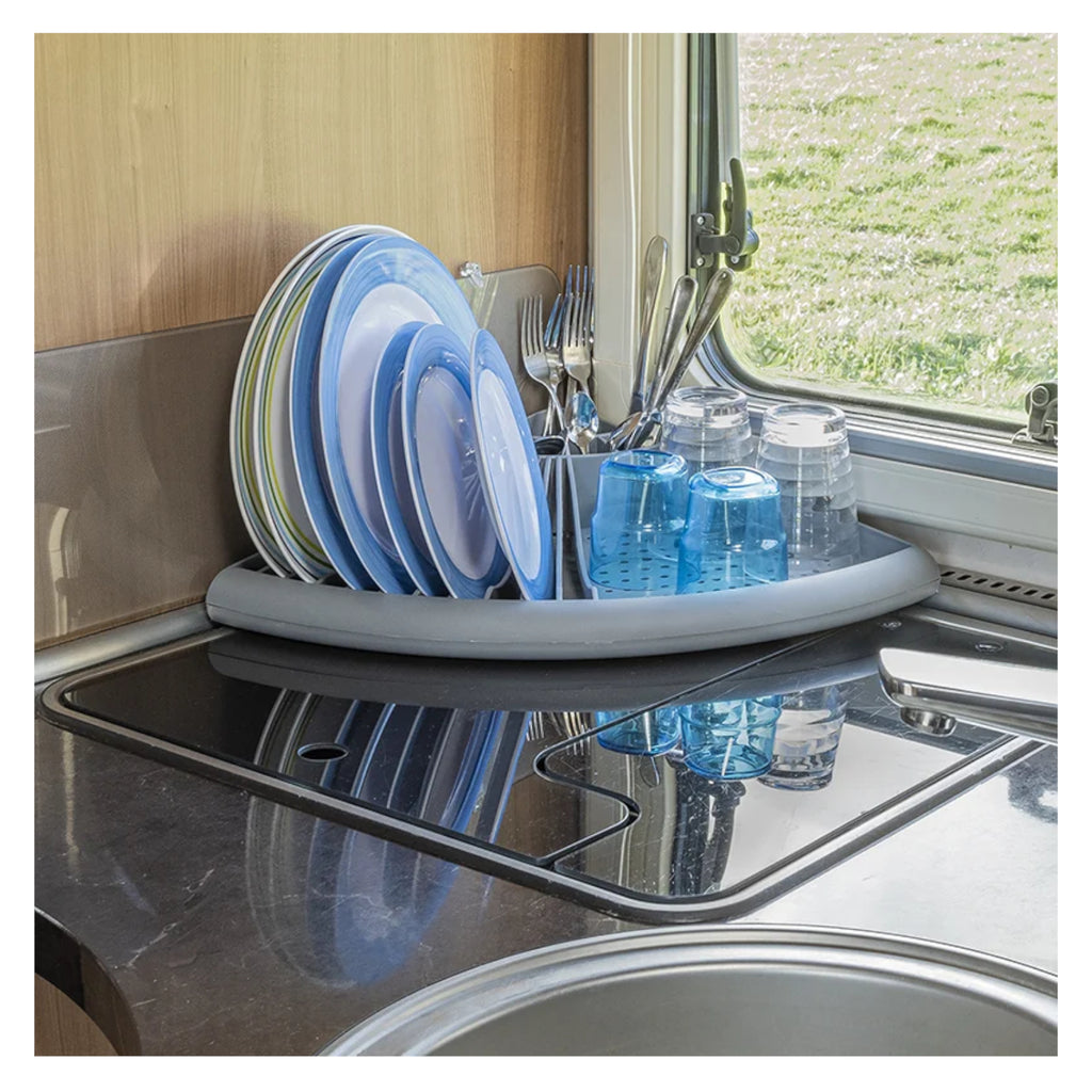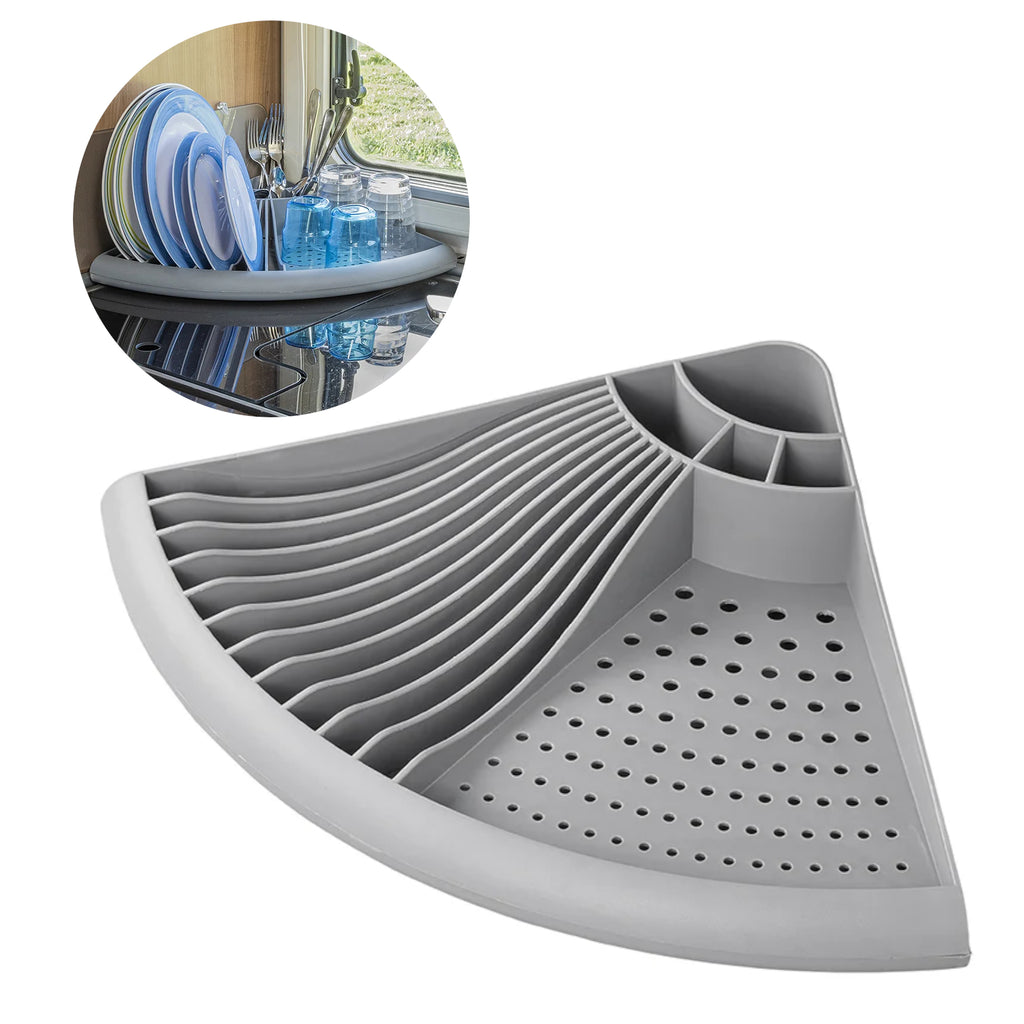 Ein unverzichtbares Utensil für jeden mit dem Ziel den Raum so effizient wie möglich zu gestalten. Der Eck-Geschirrtrockner bietet Platz für 11 Teller, verfügt über 4 Besteckfächer und eine flache Ebene für Tassen.