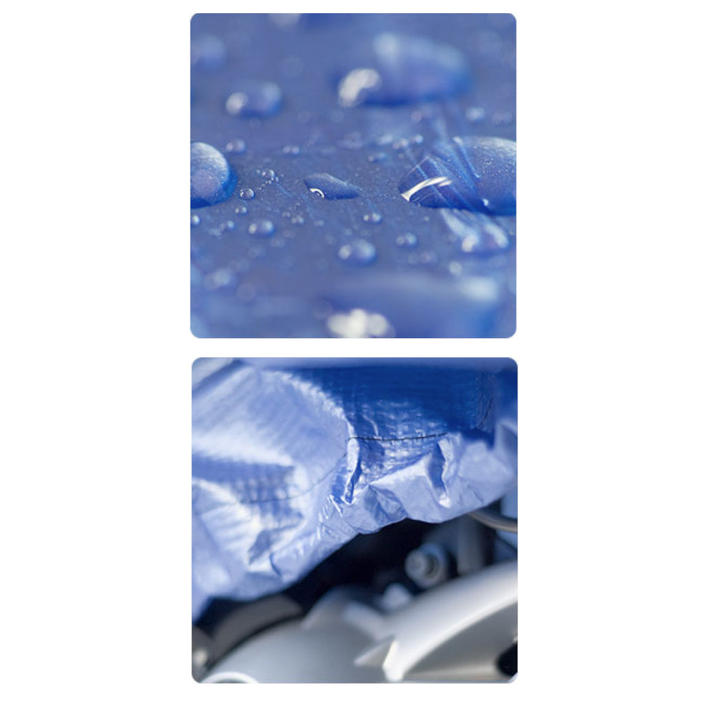 Frostbeständig, wasserdicht, schmutzabweisend und eine gewebeverstärkte Folie. Die Faltgarage von Eigbrecht schützt ihr Motorrad zuverlässig gegen intensive Sonneneinstrahlung, Vogelkot, Baumharze oder Witterungseinflüsse. Durch die UV-stabilisierung sind auch die Polsterstoffe gegen das Ausbleichen durch UV-Strahlung optimal geschützt. Die eingeschweißten Ösen und der rundum Gummizug sorgen für den perfekten Sitz am Fahrzeug und das geschäumte Innenfutter schützt vor Lackkratzer.