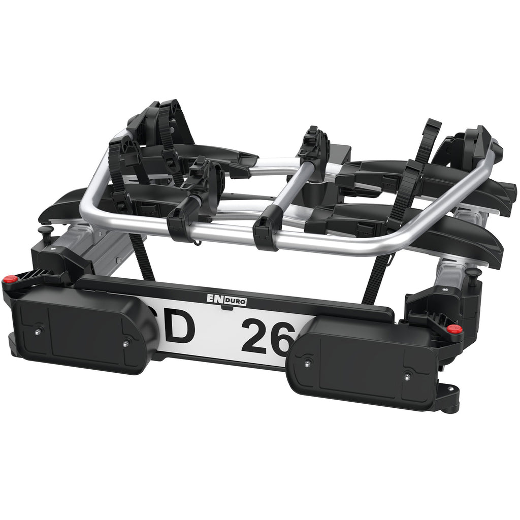 Der Heckträger ist mittels Schnellkupplung einfach zu montieren, bietet Platz für bis zu zwei normale oder elektrische Fahrräder. Durch das clevere Design und mit einem Gewicht von nur 20,5 kg, ist er sehr stabil, sicher und hält deine Fahrräder während der Fahrt an Ort und Stelle.