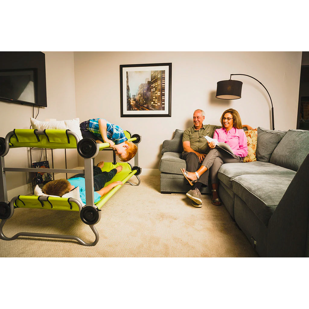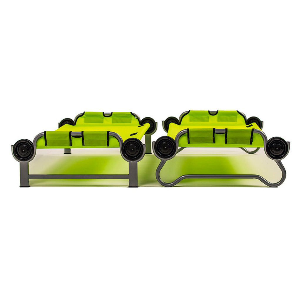 Genieße die Nacht unter den Sternen mit dem Kinder Etagenbett Kid-O-Bunk! Dank des kleinen Packmaßes ist es leicht zu transportieren und zu lagern - und dabei genauso robust und langlebig. Innerhalb kürzester Zeit kann das praktische Kinder Etagenbett auf oder abgebaut werden, ganz ohne Werkzeug. Noch mehr Luxus bietet die passende Seitentasche - so wird dein Campingausflug zum unvergesslichen Erlebnis. Das ideale Etagenbett für unternehmungslustige Kinder zwischen 7 und 12 Jahren. Es kann als platzsparendes Etagenbett oder 2 Einzelbetten genutzt werden. Bei Etagenbett-Nutzung liegt die Höhe des unteren Bettes bei 24 cm und die Höhe des oberen Bettes bei 71 cm. Der runde Rahmen des unteren Betts gleicht Unebenheiten aus und schont den Zeltboden.