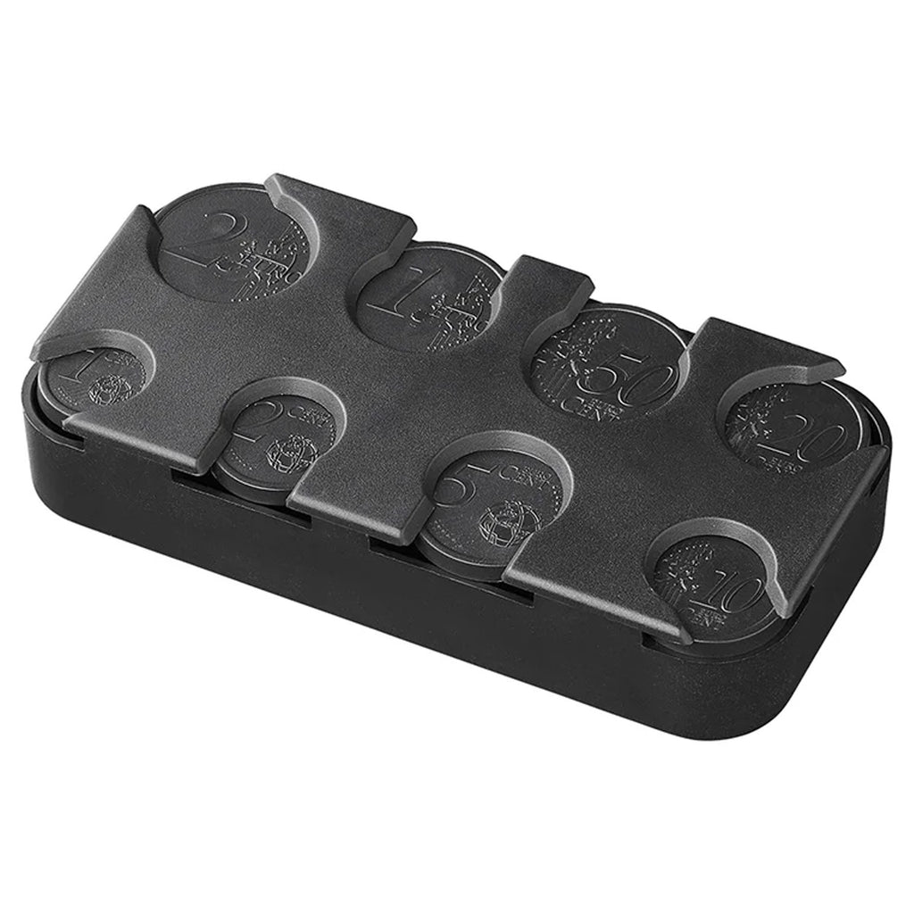 Mit diesem Aufbewahrungshelfer hast Du Deine Münzen immer griffbereit und übersichtlich sortiert. Das spezielle Design des Münzspenders ermöglicht Dir eine einfache Aufbewahrung und Mitnahme von Münzen in allen gängigen Euro-Größen: 1 Cent, 2 Cent, 5 Cent, 10 Cent, 20 Cent, 50 Cent, 1 EURO und 2 EURO. Dank des langlebigen Kunststoffmaterials ist der Münzhalter besonders robust und praktisch in der Anwendung.