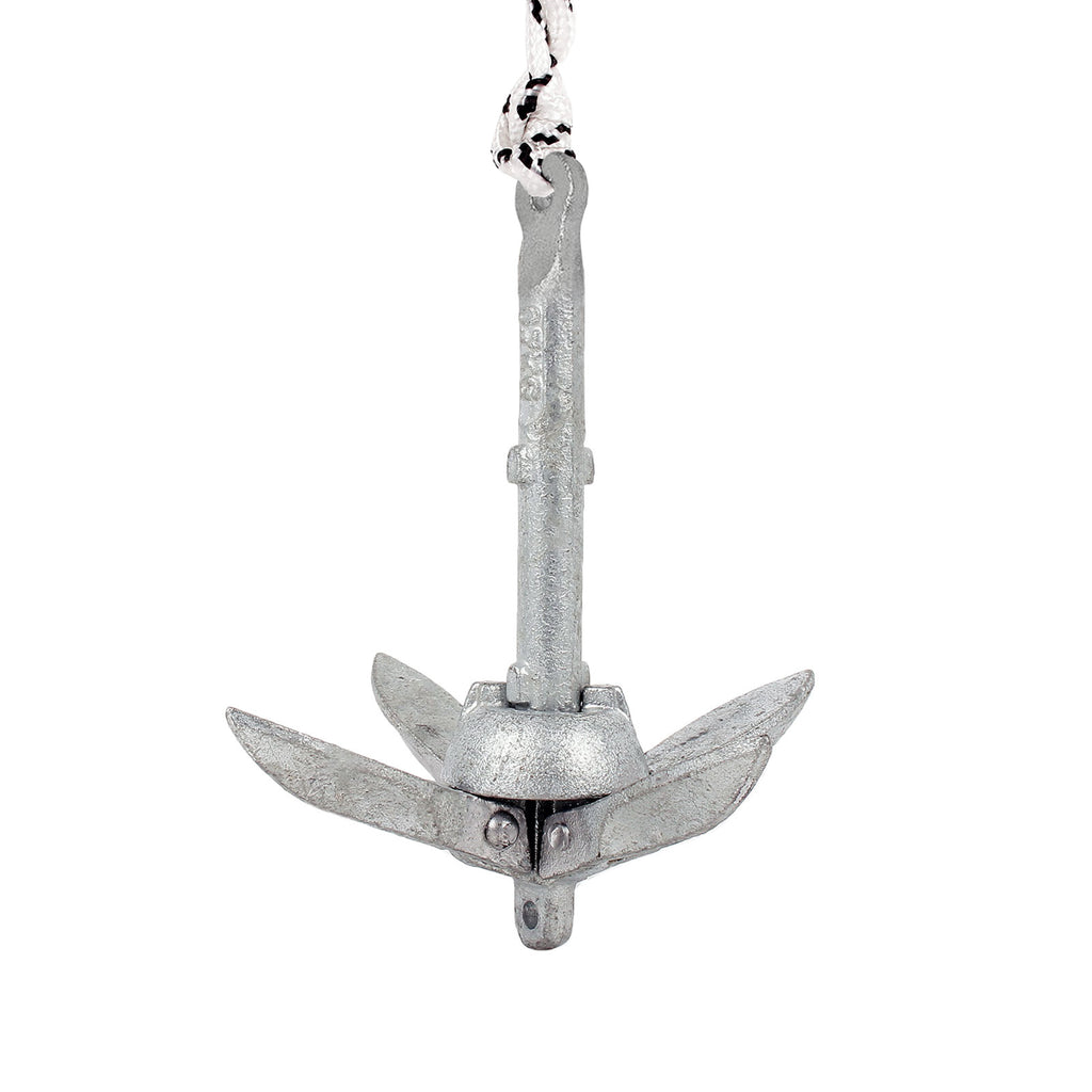 Der verzinkte Anker mit Einklapp-Funktion ist ein smarter Begleiter für den nächsten Boots-Trip. Zu verdanken ist das der vier Armen, die wie ein Regenschirm ganz unkompliziert ein- und ausgeklappt werden können. Der Klappanker der Firma Proplus hat einen eiförmigen Kopf und liegt mit 0,7 kg leicht in der Hand bzw. auf Grund.