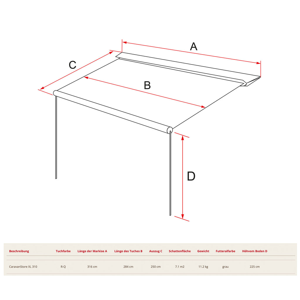 • Einfache Spannung: weitreichendes Regulierungssystem, um das Markisentuch nach Belieben in Spannung zu bringen