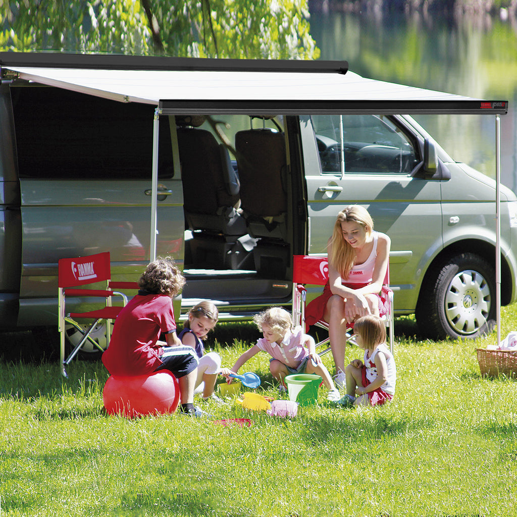 Fiamma F45S, die kompakte, innovative Markise. Einfach zu montieren, einfach in der Anwendung. Perfekt für Bus, Reisemobil, Wohnwagen, Kastenwaagen oder Geländewaagen.