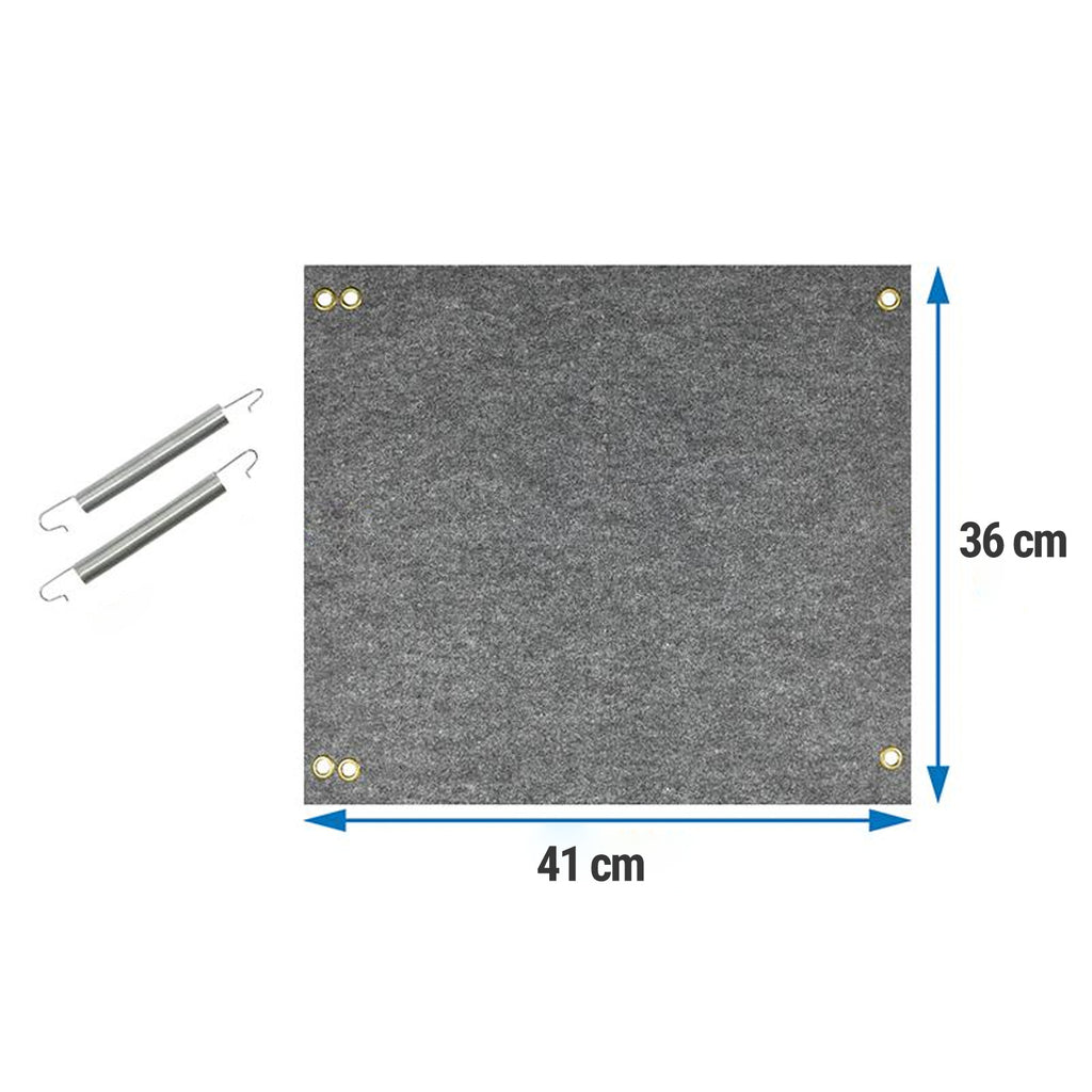 Praktische Fußmatte für die Wohnwagen oder Wohnmobil Trittstufe. Die Trittstufen Fußmatte besteht aus einem witterungsbeständigen Vliesstoff. Mit den Maßen von 36 x 41 cm (B/T) ist die Matte für alle gängigen Einstiegshilfen geeignet. An der Ober- und Unterkante befinden sich neun Metalössen zur sicheren Montage. Spannfedern, zur finalen Fixierung, sorgen für die nötige Sicherung.