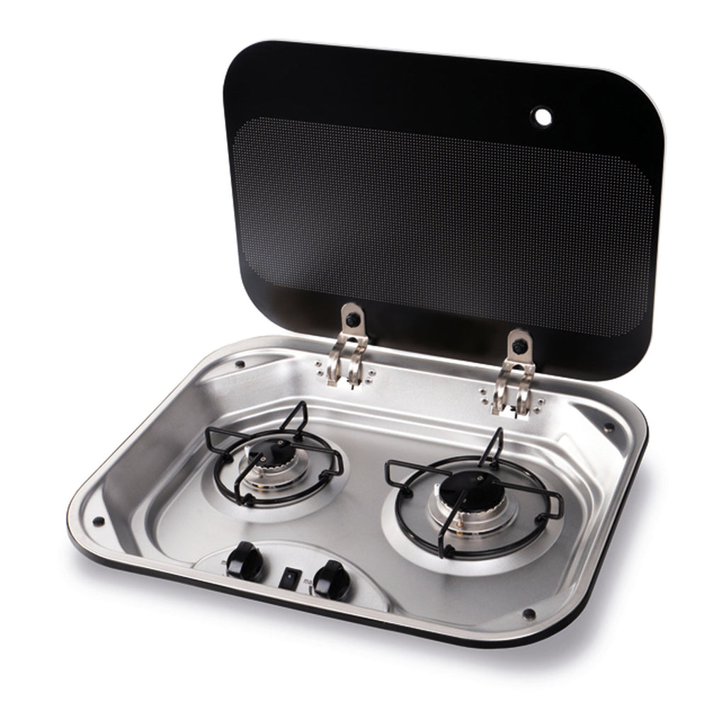 Der pflegeleichte Gaskocher wird aus hochwertigem Edelstahl gefertig und eignet sich ideal für den Einbau in Kastenwagen, Campervan oder Reisemobil. Das 2-flammige Gaskochfeld zeichnet sich besonders durch seine zwei Gasbrenner mit jeweils 1,8 kW und 1,0 kW aus, die unabhängig voneinander betrieben werden können. Beide Gasbrenner sind mit einer Zündsicherung ausgestattet. Durch die eingelassenen Bedienelemente kann die Glasabdeckung bei Nichtgebrauch vollständig geschlossen werden.