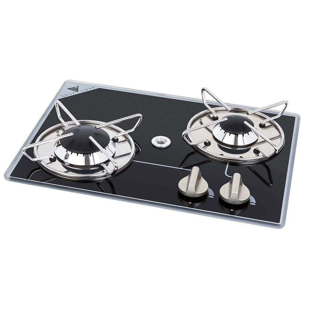 Das rechteckige Einbau-Gaskochfeld besteht aus schwarzem, gehärtetem 8mm Glas und verfügt über 2 Brenner. Dank der glatten Glasoberfläche ist der Gaskocher einfach sauber zu halten. Der Gasherd sieht nicht nur edel aus in jedem Wohnwagen und Wohnmobil, sondern bietet ausreichend Platz um auch deine Lieblingsgerichte zubereiten zu können.