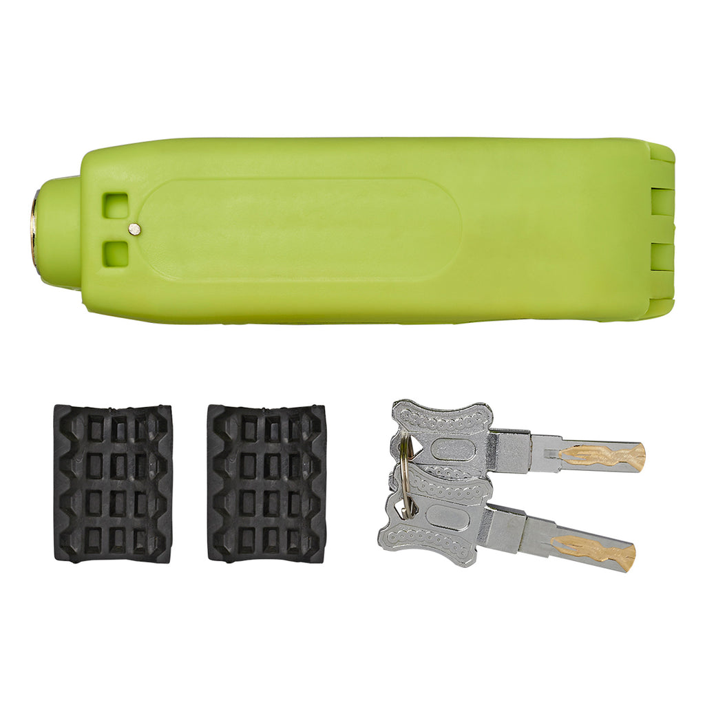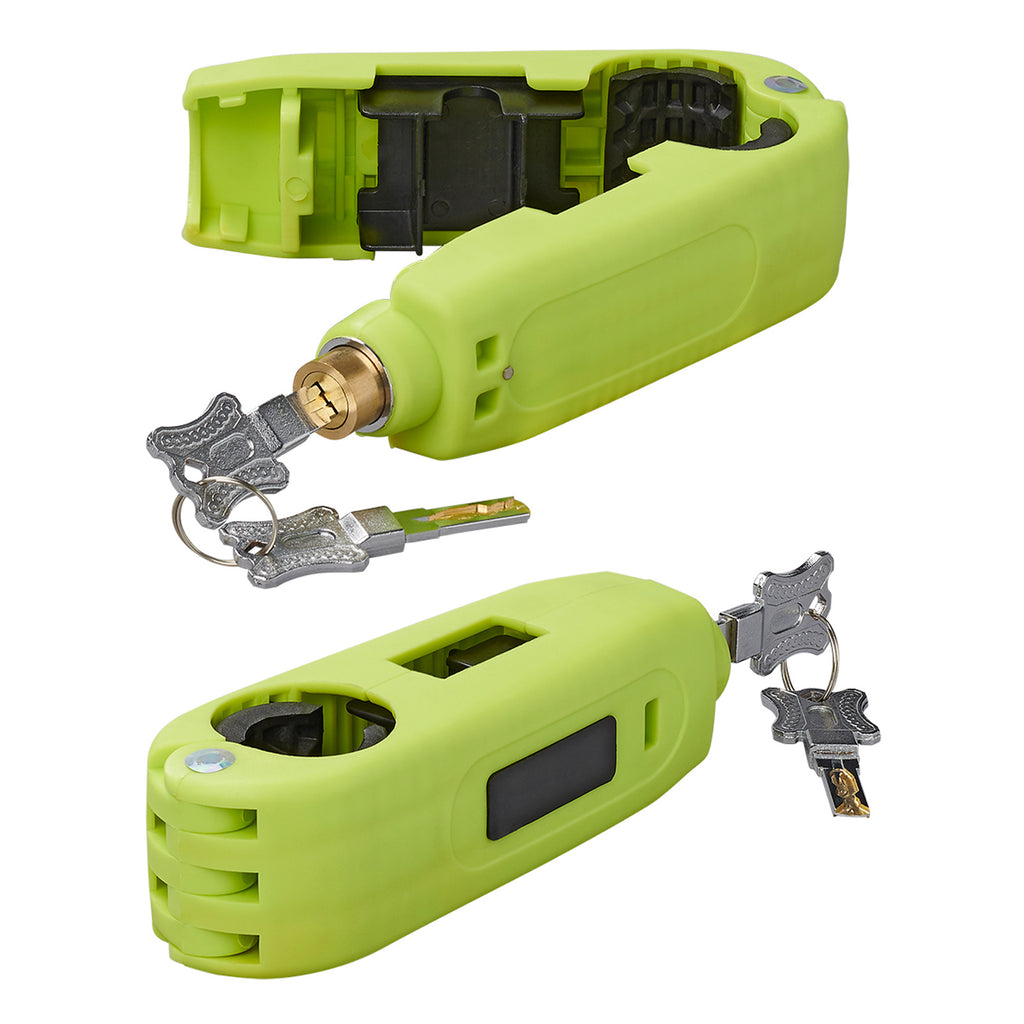 Dieses zuverlässige Hebelschloss ist der optimale Schutz für Ihr Motorrad, Roller oder Fahrrad. Witterungsbeständig dank Edelstahltbauteilen, auffällig dank Neon Gehäusefarbe, sicher und zuverlässig dank Sicherheitsschließzylinder