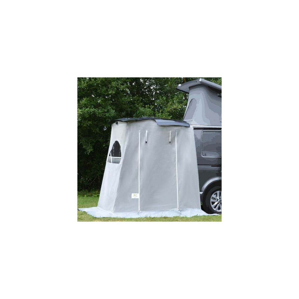 Ein Heckzelt - die perfekte Wahl für alle Kastenwagenfahrer. Das Zelt für die Heckklappe zeichnet sich durch ein geringes Packmaß und super simplen Gebrauch aus - der Aufbau war nie einfacher. Das Anbauzelt ist innerhalb weniger Sekunden errichtet und bietet dir ausreichend Privatsphäre auf dem Campingplatz oder in der Natur. Ein wahres Raumwunder: Das Offroad Heckzelt bietet dir viel nutzbaren Platz mit Stehhöhe und das direkt am Fahrzeug. Endlich Schluss mit lästigen Gängen zur Umkleidekabine oder den Toilettenhäusern, denn deine Umkleide hast du ab jetzt immer dabei. Zusätzlichen bietet es im Heckraum mehr Platz für zum Beispiel Fahrräder und Gepäck. Die Tür ist einfach aufrollbar.