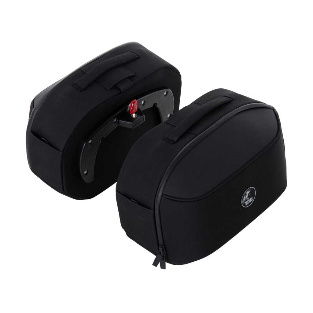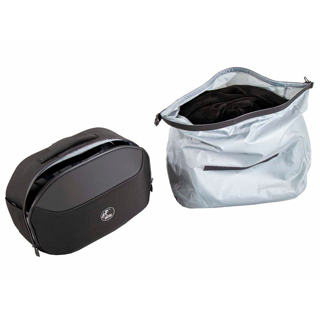 Gefertigt aus robustem und reißfestem Polyester-Gewebe, kombiniert mit wasserdichten Innentaschen und gummierten Reissverschlüssen ist es der ideale Begleiter für Wochenendtrips und lange Touren. Durch die symmetrische Gestalt der Softtasche lässt es sich seitenunabhängig am C-Bow Seitenträger anbringen. Die Tasche besitzt eine leicht zugängliche Außentasche und eine großzügige Öffnung zum einfachen Bepacken. Der wasserdichte Innensack kann nach einer regnerischen Tour einfach heraus- und mitgenommen werden. Der enganliegende, flatterfreie Tragegriff ist mit einem Gummiband versehen und ein Schultertragegurt erleichtert ihnen den Transport vom Motorrad. Beide Taschen können zudem miteinander verspannt werden, so dass bei großzügiger Beladung eine zusätzliche Systemstabilität sichergestellt ist und die Taschen ihre Formbeständigkeit behalten.