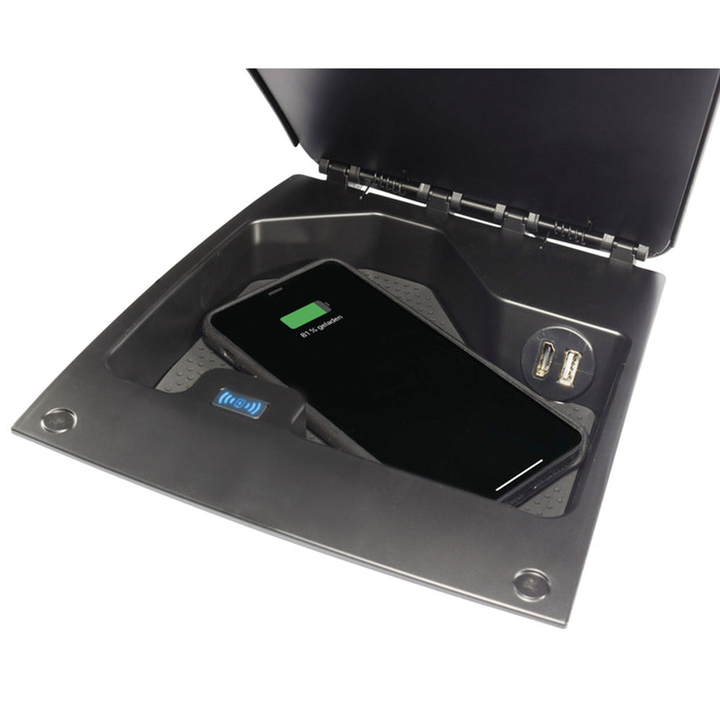 Die Induktions-Ladeschale ist eine passgenaue Ladelösung für Fiat Ducato, Citroen Jumper oder Peugeot Boxer. Geeignet ist diese für kabelloses Aufladen aller Smartphones, die induktives Laden erlauben. Störende Kabel gehören somit der Vergangenheit an! Der Ladevorgang kann einfach über den integrierten Ein-/Ausschalter gesteuert werden. Beim Aufladen ist das Mobiltelefon durch die verschließbare Abdeckung geschützt und ein Herausrutschen wird verhindert. Für Zusatzgeräte, sind zwei weitere Anschlüsse in der Ladeablage verbaut. Die Ladeschale ist unkompliziert und schnell montiert: Integriert wird diese in das Ablagefach im Armaturenbrett und per Plug & Play ans Bordnetz angeschlossen, dabei wird der originale Aufstellhalter einfach ausgetauscht.