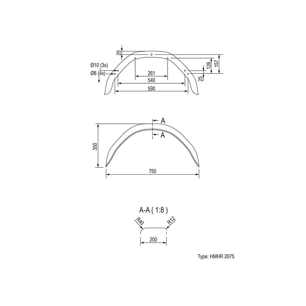 Der eckige Kotflügel aus Metall ist besonders robust und eignet sich für 14 Zoll Reifen.