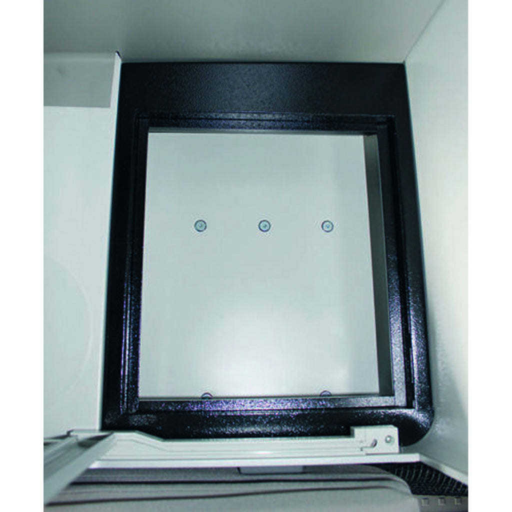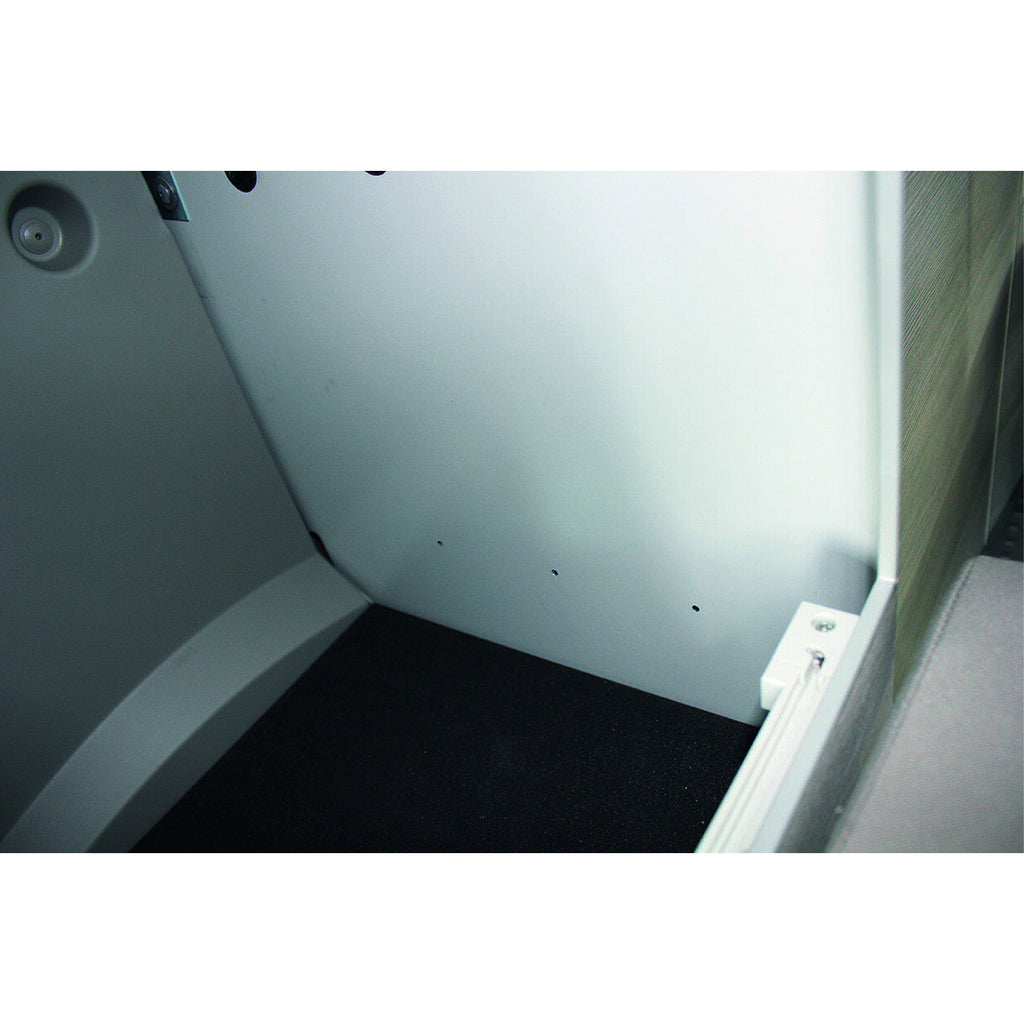 Wertfach für California Coast und California Ocean! Der Einbau befindet sich im Schrank hinten links. Die Befestigung erfolgt über die bereits vorhandenen Bohrungen im Schrank. Eine Mangan gehärtete Schlossplatte verhindert ein Aufbohren. Durch die 2 cm innenliegende Tür ist der Mobil-Safe optimal gegen das Aufhebeln gesichert. Zusätzlich ist die Tür mit einem Hintergriffwinkel gesichert. Das Verschraubungsmaterial ist im Lieferumfang enthalten.