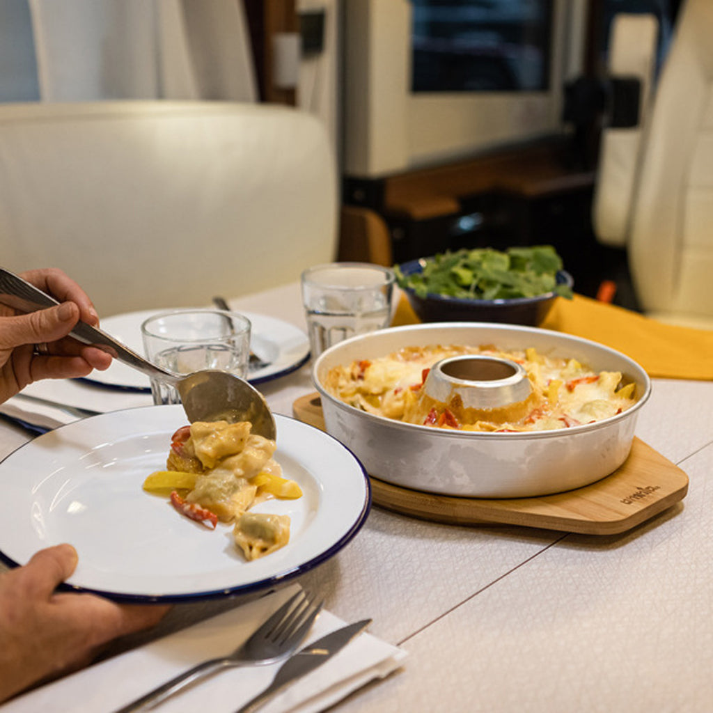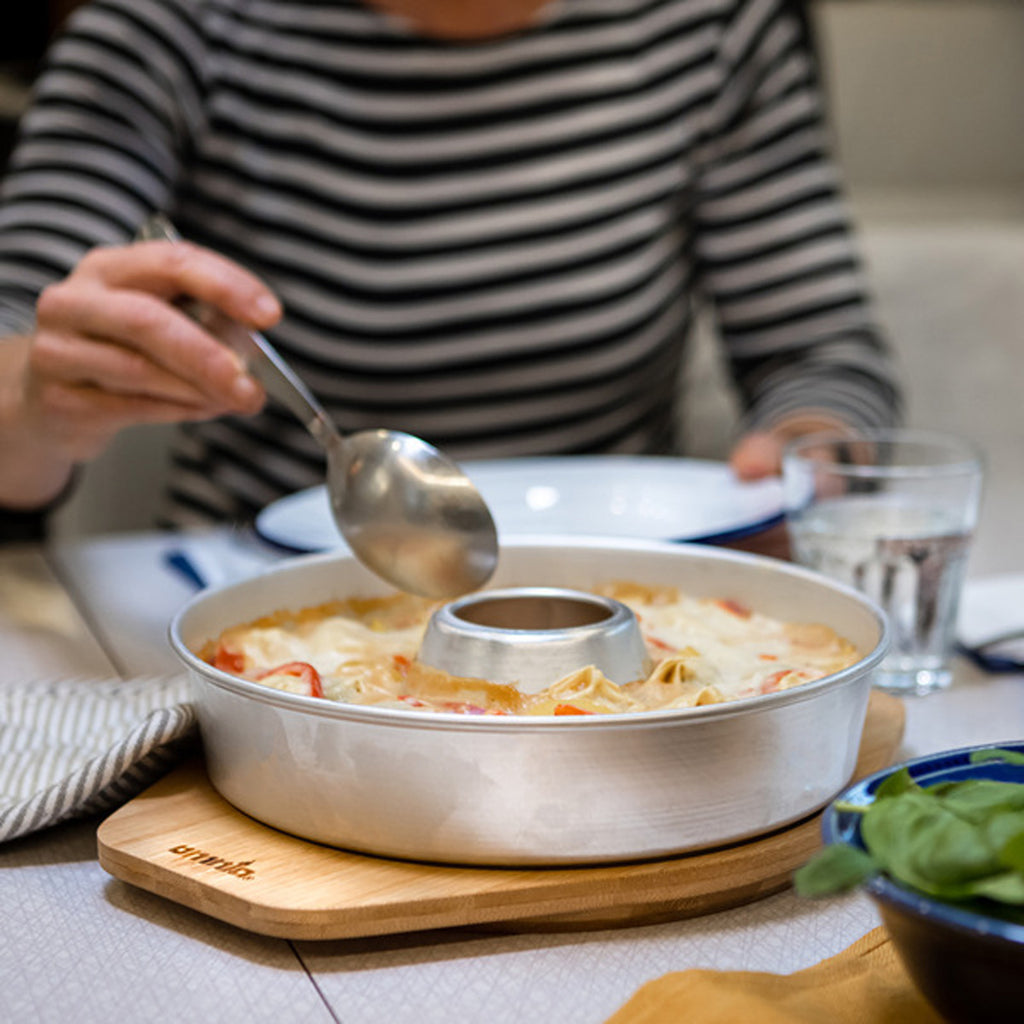 Leichtes Holzbrett aus Bambus als Untersetzer für den Ominia Backofen. Die Rückseite kann auch als Schneidebrett verwendet werden. Perfekt für den täglichen Gebrauch. Nachhaltig und umweltfreundlich. Leichtes Gewicht.