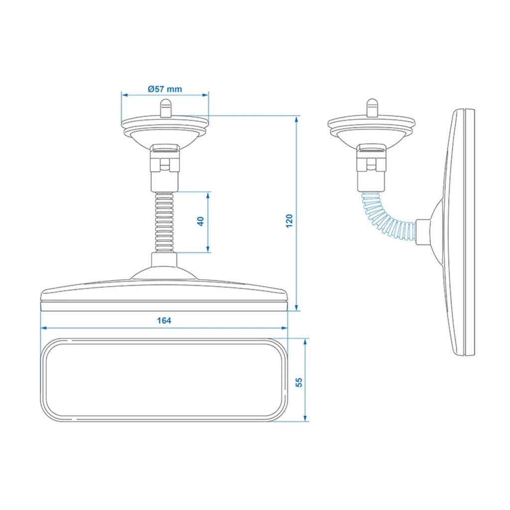 Ausgestattet mit einem 4 cm langen Flexarm zur einfachen Einstellung. Ideal als zusätzlicher Spiegel für Wohnwagen, Caravan, PKW bis hin zu Lehrfahrzeugen.