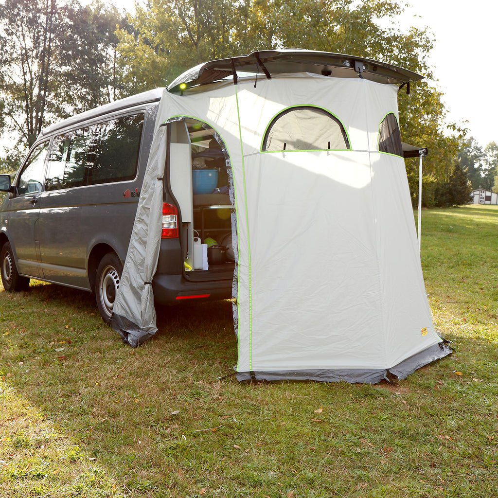 Kompaktes Heckzelt, optimal passend für VW T4, T5, T6. Perfekt geeignet als Raumerweiterung oder als Dusch- oder Umkleidekabine.