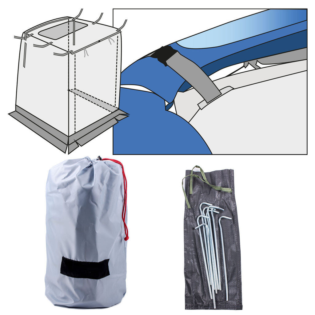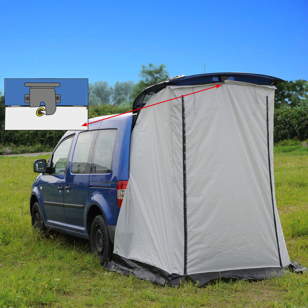 Kompaktes Heckzelt, optimal passend für Renault Kangoo II ab Bj. 2008. Perfekt geeignet als Raumerweiterung am Minicamper oder als Dusch- oder Umkleidekabine.
