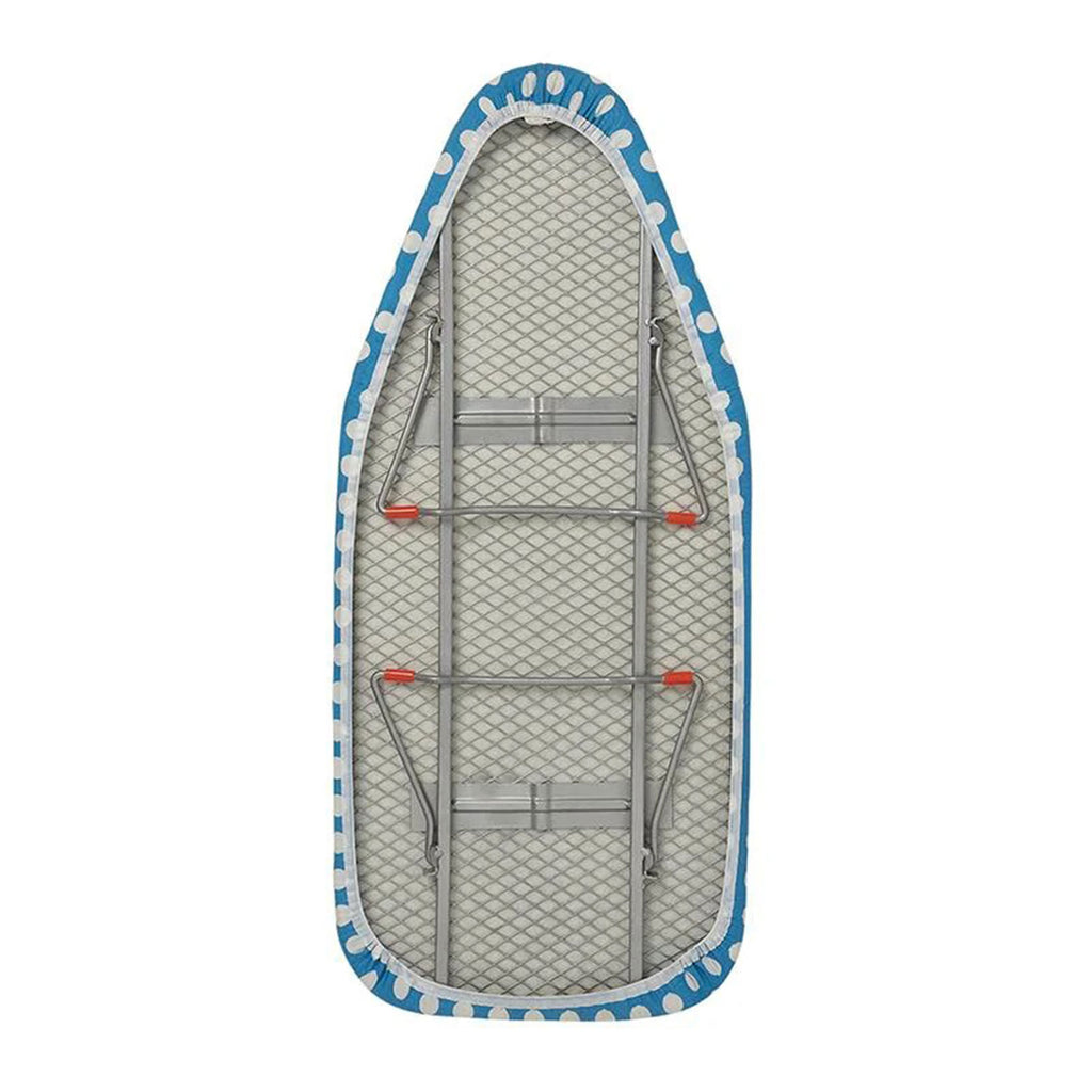 Nie war Bügeln schöner, ehrlich! Diese schicke Kompaktlösung für mehr faltenfreie Wäsche unterwegs ist die Ideallösung für platzreduzierte Lebenssituationen. Ob im Campingbus, Wohnwagen oder auch Zuhause in kleineren Wohnungen ist das optisch verspielte Tischbügelbrett perfekt einsetzbar. Dank der gummierten, klappbaren Klammerständer, steht das Bügelbrett auch auf glattem Untergrund stabil. Lässt sich flach und platzsparend verstauen. Der gummiumsäumte Bezug sitzt einwandfrei auf dem Brettgestell und ist abnehmbar. Eine zuverlässig dichte Schaumstoffpolsterung sorgt für die notwendige Hitzeumwandlung von Wäsche zu Bügeleisen. Ein Essential im Camping-Haushalt.