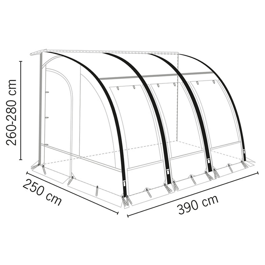 • Maße (L x B x H): ca. 390 x 250 x 260-280cm