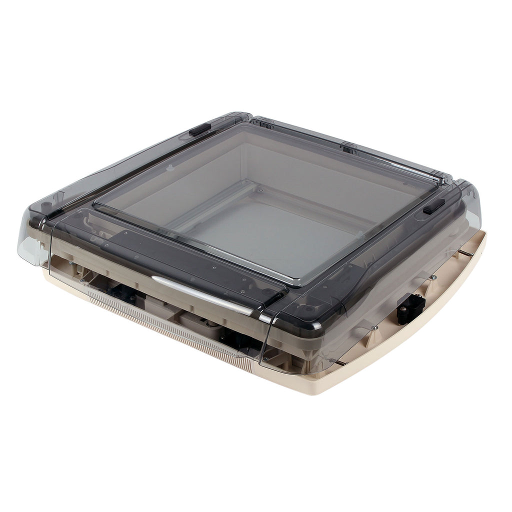 REMItop Vario II 40x40 cm mit Standardrahmen, ohne Beleuchtung und Lüfter. Remis Remitop Vario zählt zu den Licht stärksten Dachhauben am Markt. Die leicht grau getönte Haube mit Insektenschutz- und Plissierrollo lassen keine Wünsche offen. Hervorragende Isolationseigenschaften.