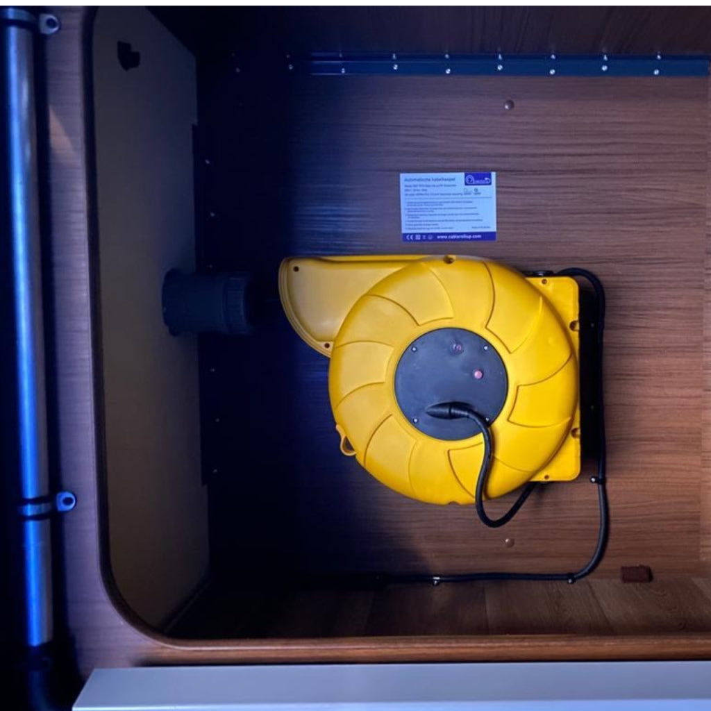 ROLL-UP-CABLE ist ein automatisches Aufrollsystem für die Stromversorgung deines Wohnmobils oder Wohnwagens. Das System wird in einer sogenannten Unterputzdose in die Seitenwand deines Fahrzeugs eingebaut.