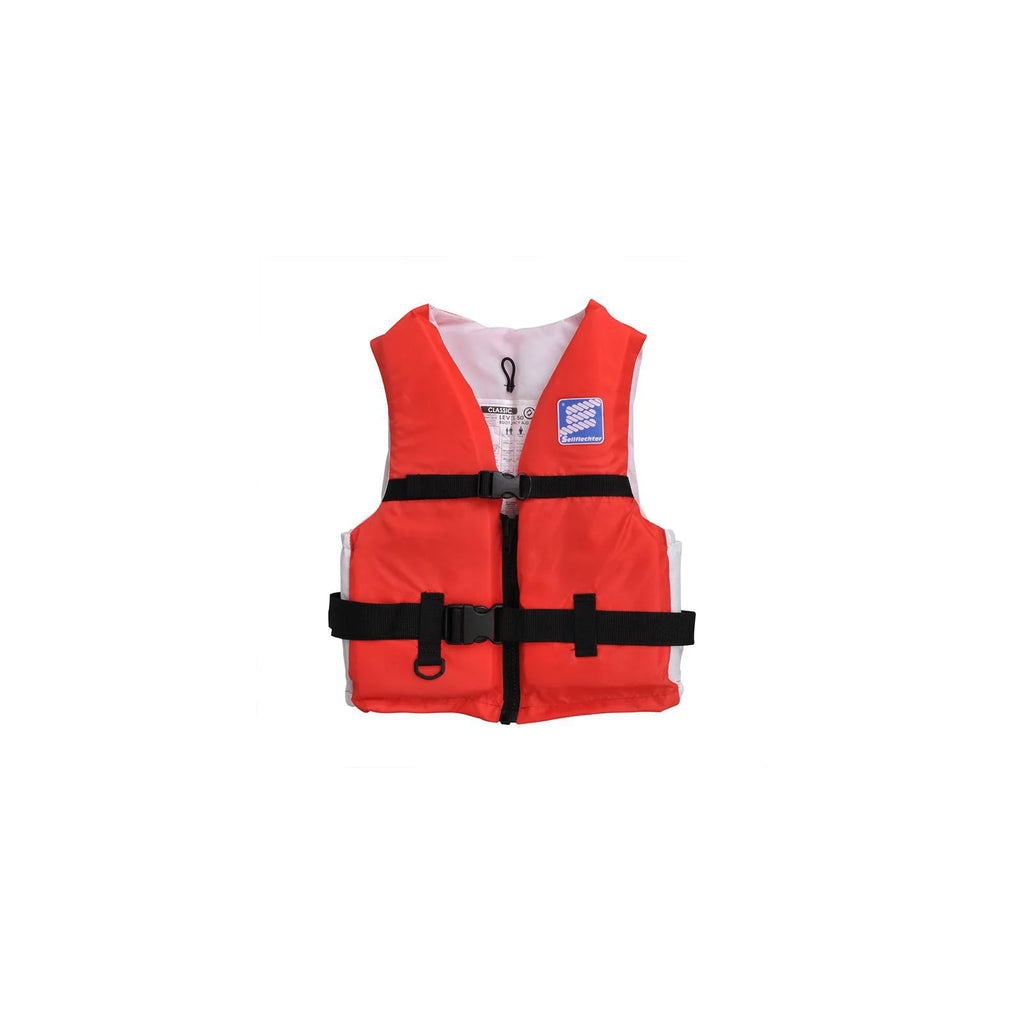 Mit dieser Rettungsweste können Kinder gesichert ins Wasser gehen. Die Weste besteht aus fluoreszierendem Orange - extra sichtbar sind.
