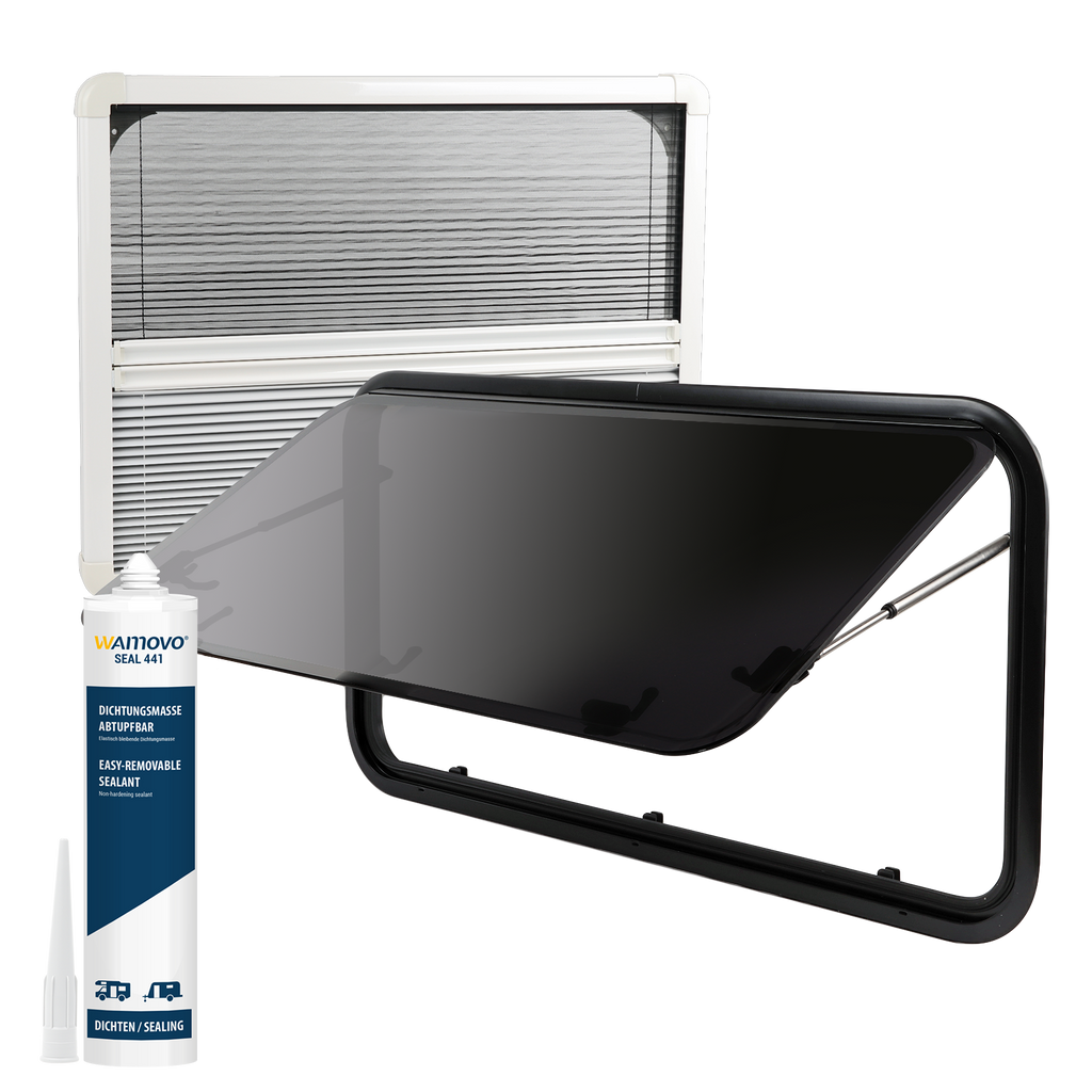 Das Ausstellfenster RW Compact ist ein echter Hingucker! Die Scheibe schließt flächenbündig mit dem hochwertigen, schwarzen Aluminiumrahmen ab. Das Fenster lässt sich über den Teleskopaussteller lässt sich das Fenster verstellen. Die getönte doppel-acrylverglaste Scheibe isoliert hervorragend und bietet dadurch mehr Privatsphäre durch Sichtschutz.