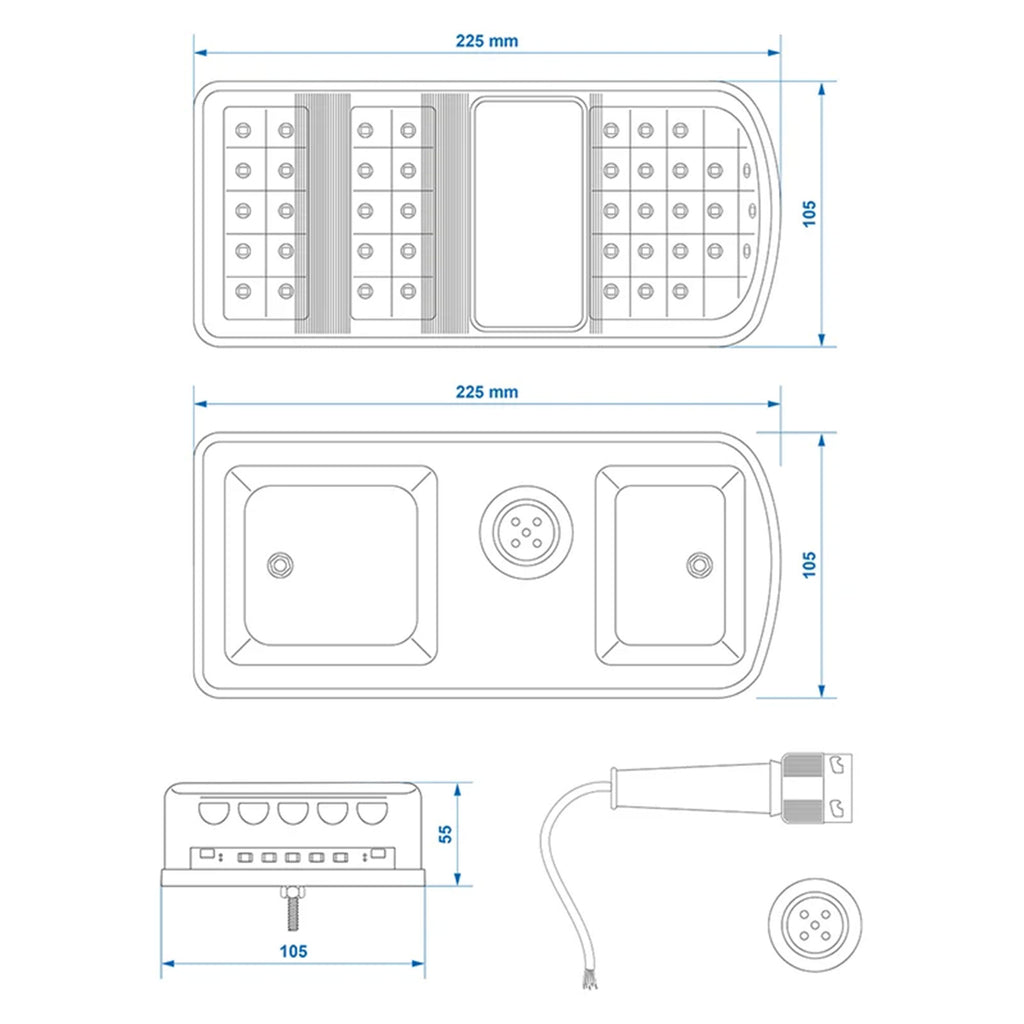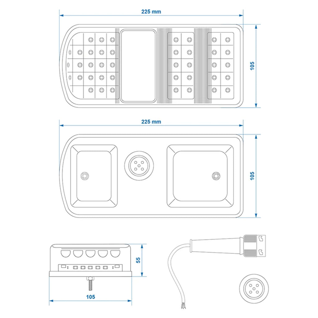 Die e LED Anhänger Rückleuchte bietet fünf Funktionen in einem kompakten Gehäuse (225x105mm) mit 43 LEDs. Dank des 5-Pin "Easy Connectors" und des beiliegenden Adapterkabels ist ein schneller Anschluss gewährleistet. Mit einer Betriebsspannung von 12V und der Schutzklasse IP67 ist diese Universal Anhänger Rückleuchte ideal für verschiedene Anhängertypen. Perfekte Sichtbarkeit und Sicherheit für Ihren Anhänger!