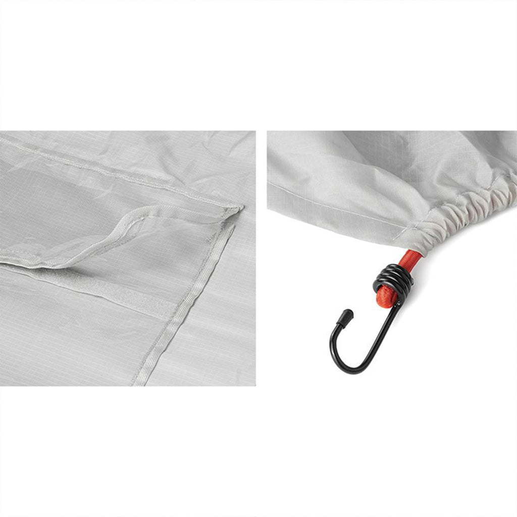 Die Schutzhülle aus widerstandsfähigem Nylon ist passend für 2 Fahrräder. Bietet ausgezeichneten Schutz gegen Regen, Schnee, Eis, UV-Strahlung, Schmutz, etc. Die Warntafel kennzeichnet überstehende Ladungen. Einfach anzubringen an dem vorgesehenen Einsteckfach der Schutzhülle.