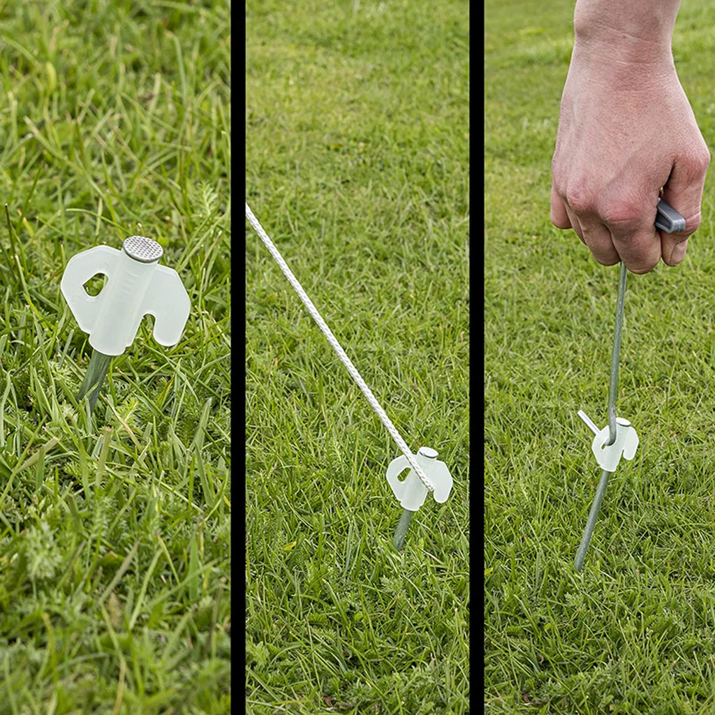• Glow-in-the-dark Technologie: verhindert das Stürzen über die Heringe und Abspannleinen im Dunkeln