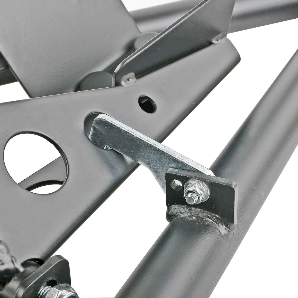 Motorradständer inkl. Abdeckung zum sicheren Abstellen des Motorrads in Garage oder Anhänger. Die Konstruktion besteht aus einem gehärtetem Stahl und bietet genügend Stabilität für alle gängigen Motorradmodelle (universal passend: Radgröße 17” – 21”). Die schwarze Lackierung ist in einem speziellen Verfahren gehärtet, um das Gestell vor einer möglichen Korrosion zu schützen. Einmal mit dem Motorrad aufgefahren, lässt sich das Vorderrad durch einen Sicherheitsbolzen auf der rechten Seite des Motorradständers fixieren. Somit sollte ein unerwünschtes Kippen oder Umfallen der Vergangenheit angehören. Die extra leichte Abdeckung besticht durch solide Verarbeitung (doppelt vernäht, Enden umgenäht), optimalen Schutz gegen Nässe und Gummizug für optimalen Sitz. Hinzu kommt ein kleine Packmaß und das unverwüstliche Pva Material.