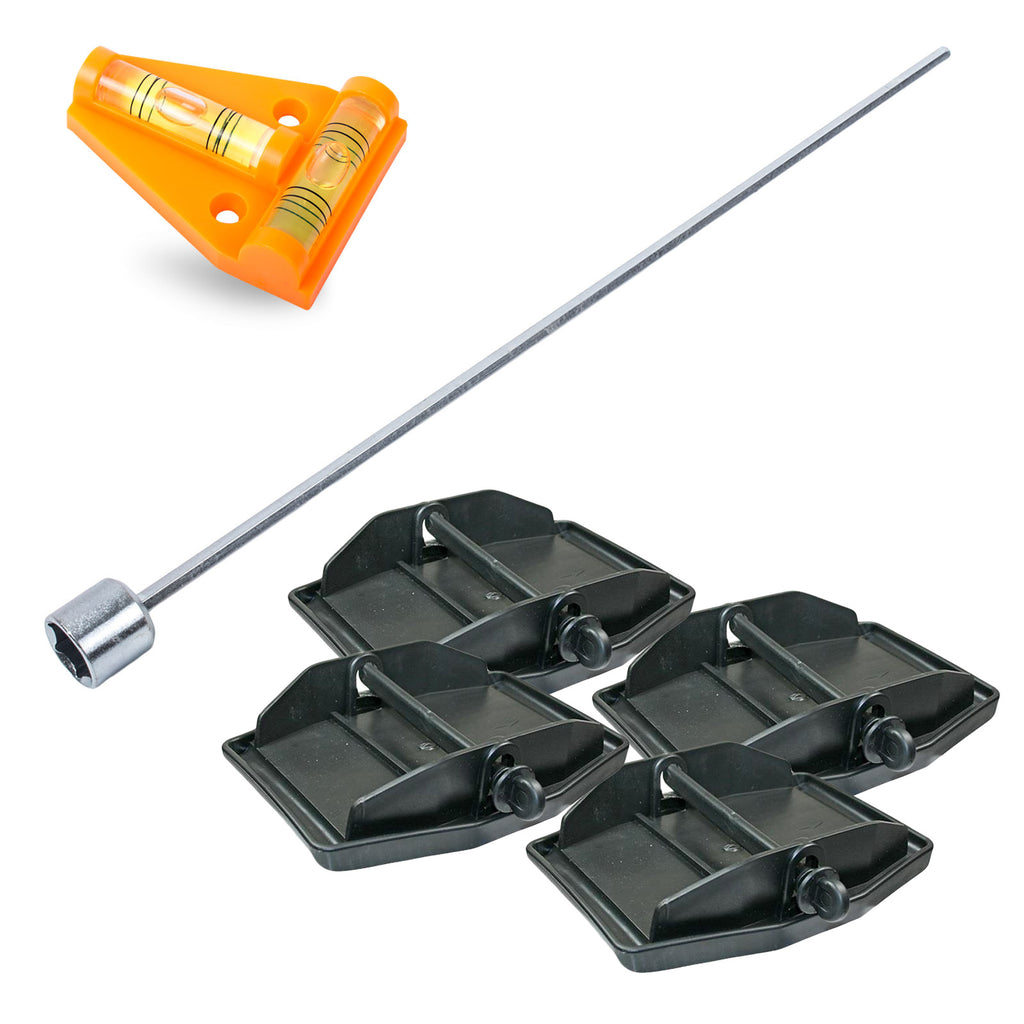 • Das Set beinhaltet 4 Stützplatten inkl. Arretierstifte
