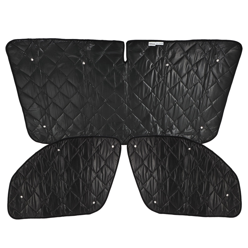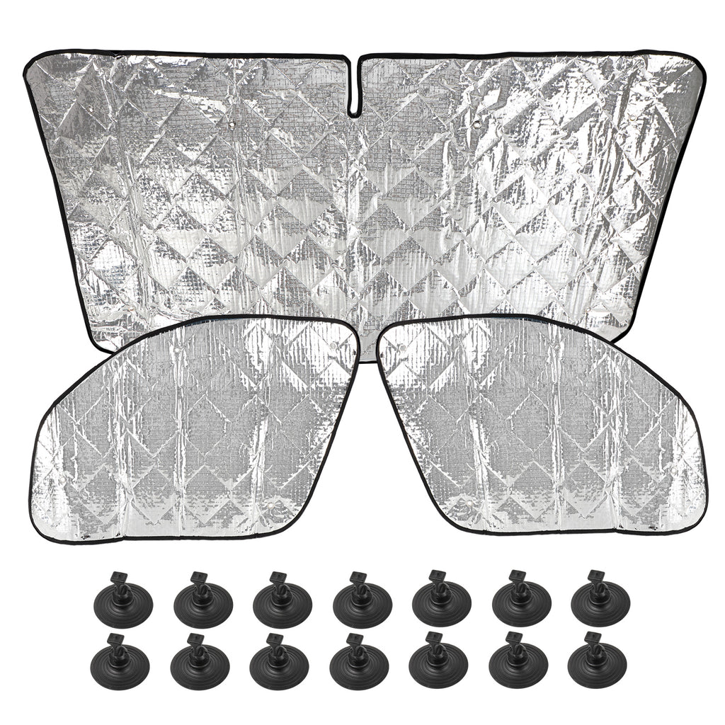 deiwo® dreigeteilt – besser angepasstUnser 3-teiliges Thermomatten-Set von deiwo® ist speziell für den Gebrauch in Campingbussen wie Fiat Ducato, Mercedes Sprinter oder VW Crafter & T5 / T6 entwickelt. Die Schutzmatten werden bestehend aus drei Teilen geliefert, was für eine bessere Möglichkeit sorgt, diese von innen an der Scheibe deines Fahrzeugs anzubringen. Die Befestigung über Saugnäpfe garantiert, dass auch jede Einzelmatte perfekt sitzt und hält und somit jede Scheibe deines Gefährts abgeschirmt ist.