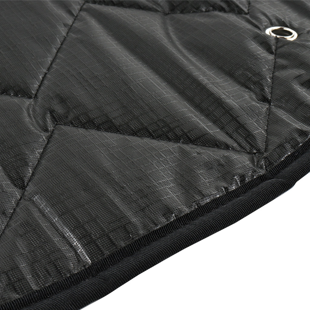 Die Basis der Thermomatte bildet eine PVC Schicht, diese vermindert die Bildung von Kondenswasser an den Fensterscheiben. Wattiertes Innenfutter schützt zudem vor eindringender Kälte oder Hitze in den Fahrerraum. Der Polyethylen Schaumstoff unterstützt diesen Effekt zusätzlich. Beide Schichten sind durch einen Alufilm voneinander getrennt, um den Wirkungsgrad positiv zu verstärken. Die zweite Schicht Polyethylen Schaumstoff mit zwei Millimeter stärke und einer Anthrazit Verkleidung bildet die vorletzte Lage der Thermomatte. Zum Schutz vor schädlicher UV-Strahlung ist die Thermomatte zusätzliche mit einem dreilagigen Alufilm netzverstärkt. Dies trägt zur nötigen Strapazierfähigkeit der Matte bei.