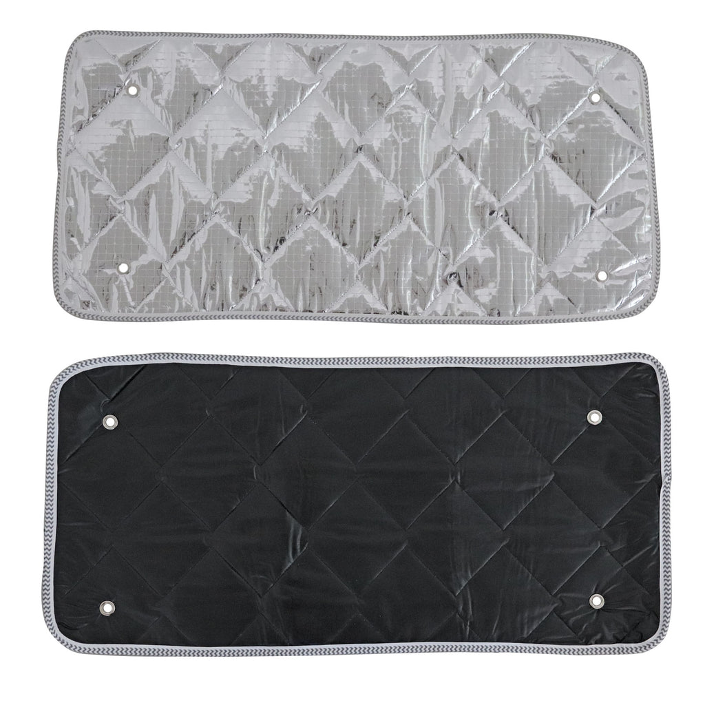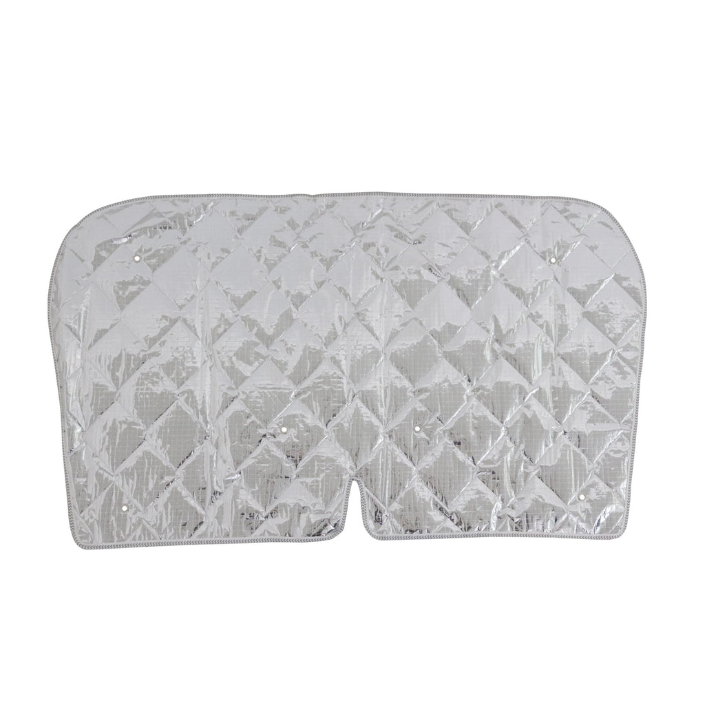 Die Basis der Thermomatte bildet eine PVC Schicht, diese vermindert die Bildung von Kondenswasser an den Fensterscheiben. Wattiertes Innenfutter schützt zudem vor eindringender Kälte oder Hitze in den Fahrerraum. Der Polyethylen Schaumstoff unterstützt diesen Effekt zusätzlich. Beide Schichten sind durch einen Alufilm voneinander getrennt, um den Wirkungsgrad positiv zu verstärken. Die zweite Schicht Polyethylen Schaumstoff mit zwei Millimeter stärke und einer Anthrazit Verkleidung bildet die vorletzte Lage der Thermomatte. Zum Schutz vor schädlicher UV-Strahlung ist die Thermomatte zusätzliche mit einem dreilagigen Alufilm netzverstärkt. Dies trägt zur nötigen Strapazierfähigkeit der Matte bei.