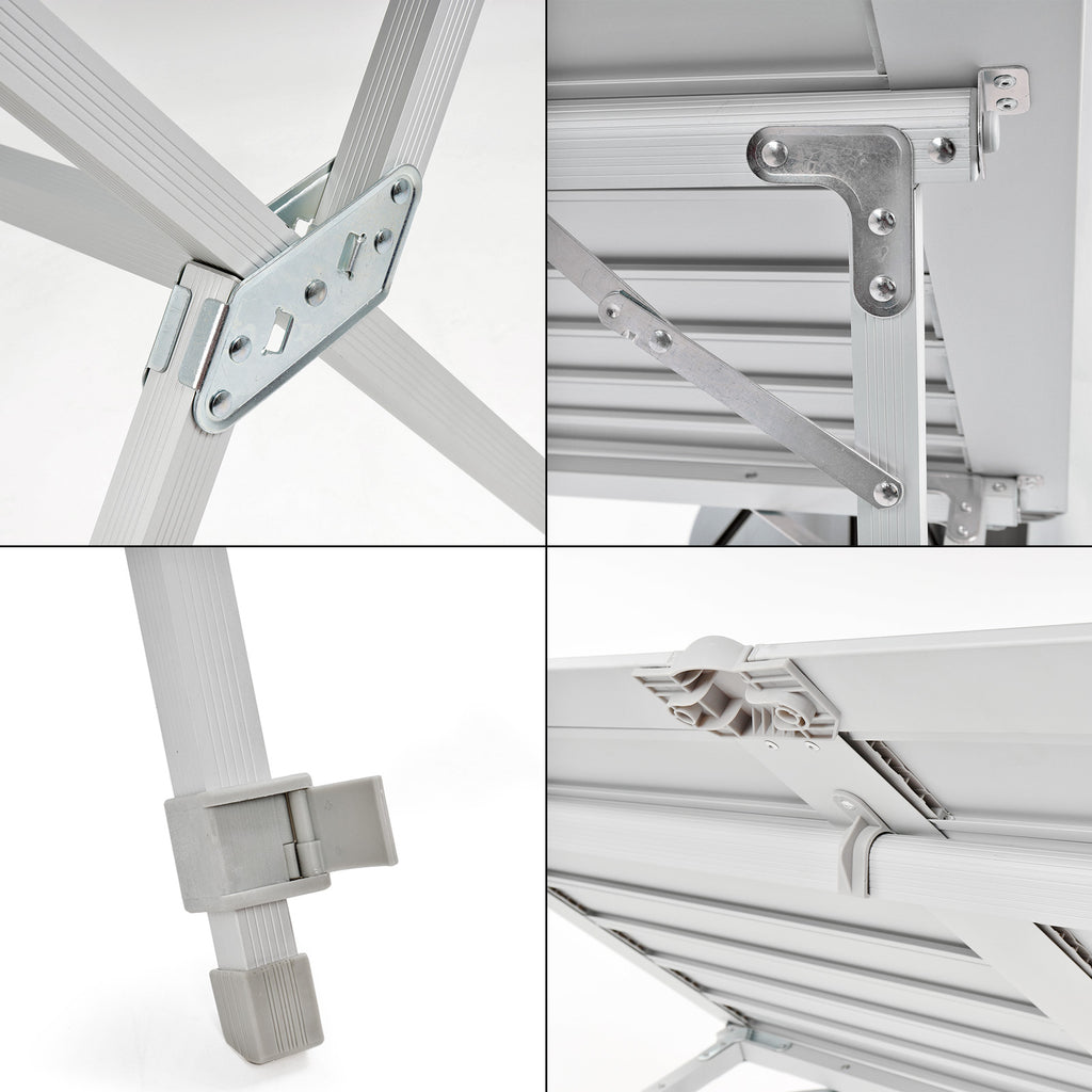 Der Campingtisch für 6 Personen, ein standfester Tisch mit höhenverstellbaren Beinen. Besonders stabile Konstruktion aus Aluminium. Der Tisch kann in der Transporttasche verstaut werden.