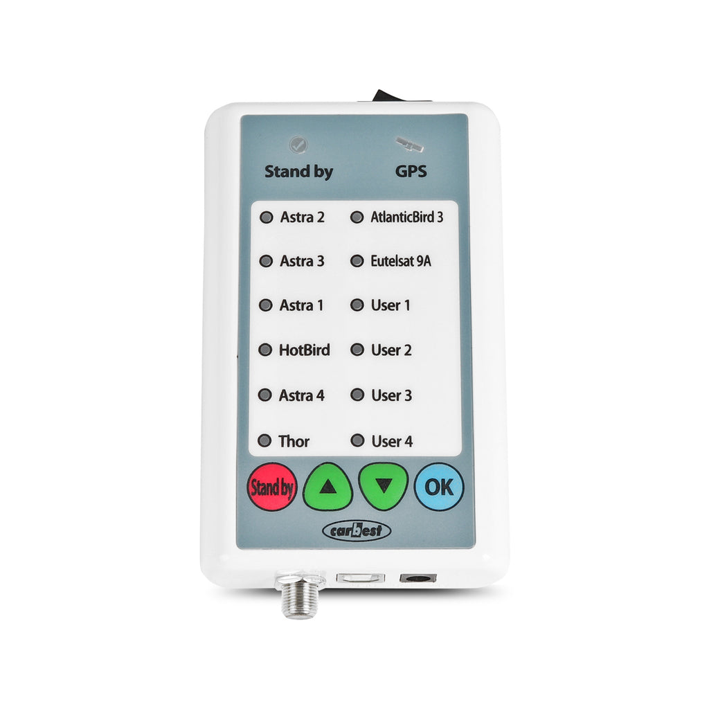 Carbest Snipe Dome Sat Anlage mit automatischem Positionierer unter einer Kunststoffhaube. Automatische Satellitensuche per Knopfdruck, innerhalb von 1 - 2 Minuten, bei geparktem Fahrzeug. Die neuartige Empfangseinheit ermöglicht eine extrem kompakte Bauform, die bestmöglich gegen äußere Beschädigungen schützt. Der Positionierer arbeitet unabhängig und kann mit jedem beliebigen Satellitenreceiver betrieben werden. Der integrierte GPS-Empfänger verkürzt die Suchzeit zum Satelliten auf nur 1-2 Minuten.