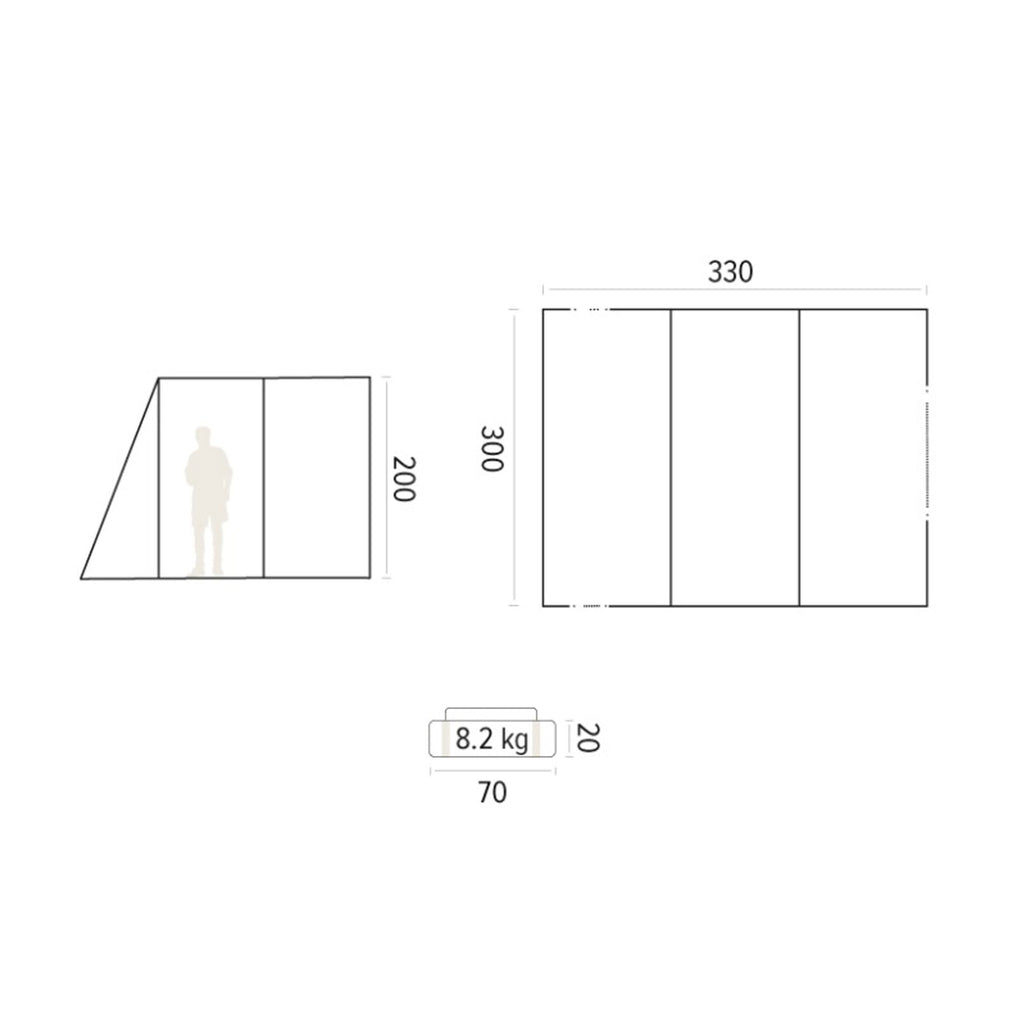 • Maße (LxBxH): ca. 330 x 300 x200 cm