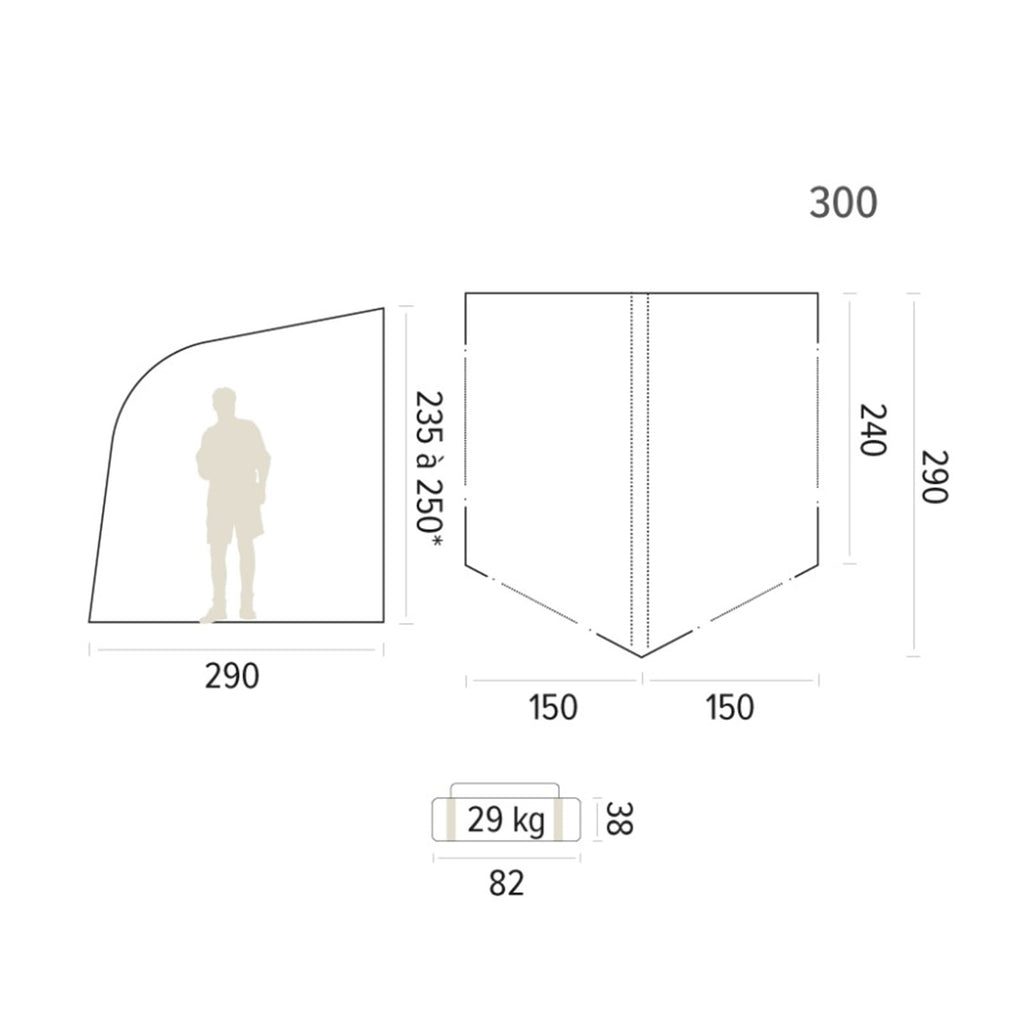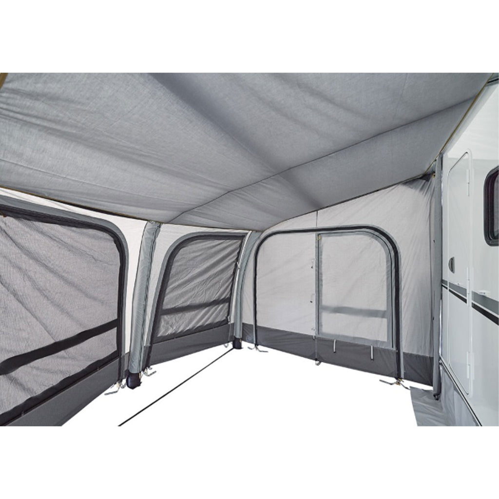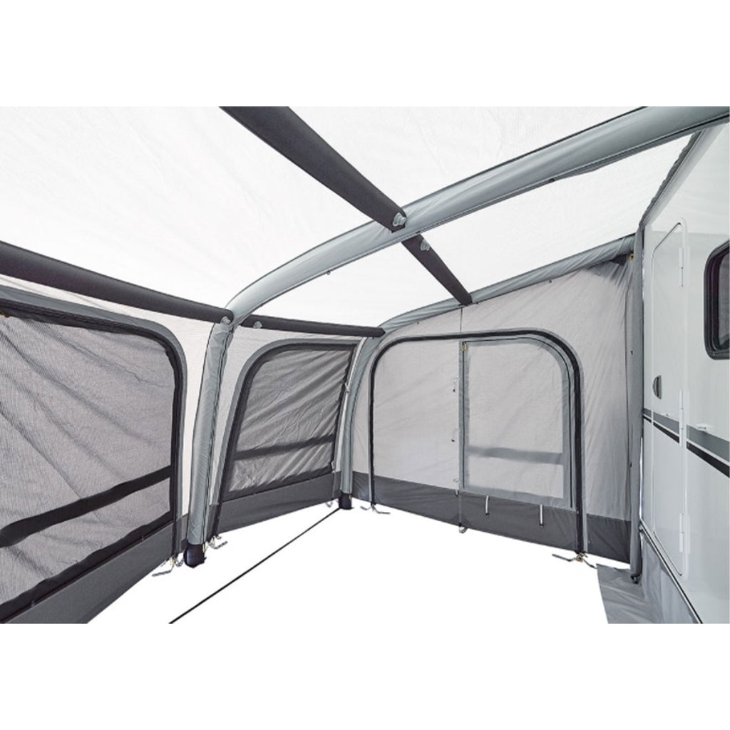 Das elegante Design des aufblasbaren Vorzeltes Lima sorgt für einen echten Hingucker auf dem Campingplatz und bereichert deinen nächsten Camping-Urlaub. Der geschaffene Wohnraum lädt zum Essen, Spielen oder Entspannen ein und bietet ausreichend Schutz vor Wettereinflüsse. Die großen Fenster bieten dank des Panoramablicks eine angenehme Urlaubsatmosphäre. Alle Öffnungen sind mit Moskitonetzen ausgestattet, um Belästigung durch Insekten zu vermeiden. Die Breite dieser Markise beträgt 3,00 Meter. Mit einer Verlängerung kann sie optional erweitert werden.