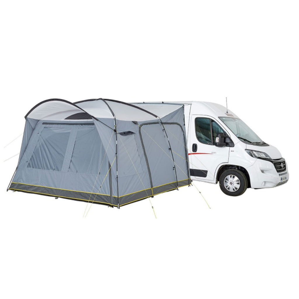 Das Vorzelte Santa Clara ist ein echter Hingucker auf dem Campingplatz und bereichert deinen nächsten Camping-Urlaub. Der geschaffene Wohnraum lädt zum Essen, Spielen, Entspannen oder auch Schlafen ein und bietet ausreichend Schutz vor Wettereinflüssen. Das Vorzelt eignet sich optimal für Freizeitfahrzeuge wie Wohnmobile, Wohnwagen, Campervans oder Busse und punktet mit einer schnellen und einfachen Montage. Ein weiterer Vorteil besteht darin, dass das Fahrzeug bewegt werden kann, während das Zelt stehen bleibt. Die Schleuse zwischen Fahrzeug und Zelt kann zudem auf beiden Seiten mit einer Tür geöffnet bzw. geschlossen werden. Die verdunkelbaren Fenster ermöglichen es, den Lichteinfall zu begrenzen und Privatsphäre zu gewährleisten und die Moskitonetze halten nervige Insekten fern.